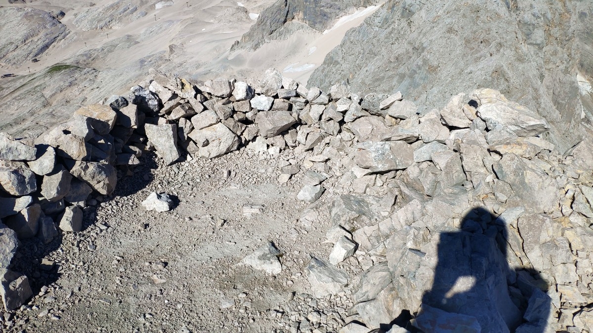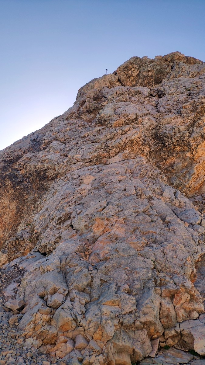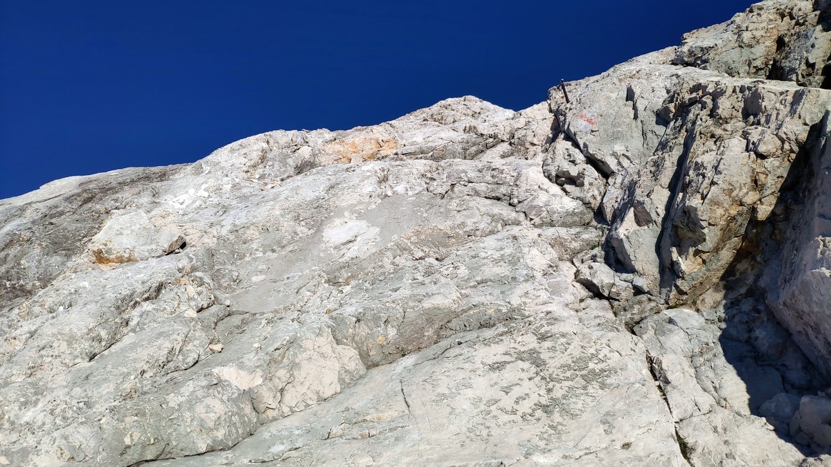 Auch die Orientierung ist ein "kleiner" Faktor. Der Jubi-Grat ist zwar stellenweise gut markiert (rote Punkte oder Linien), einige Passagen sind aber nicht immer sofort sichtbar. Großteils bewegt ihr euch direkt auf dem Grat oder nur minimal darunter. Leichtes Versteigen ist möglich und kann so etwas Zeit kosten.