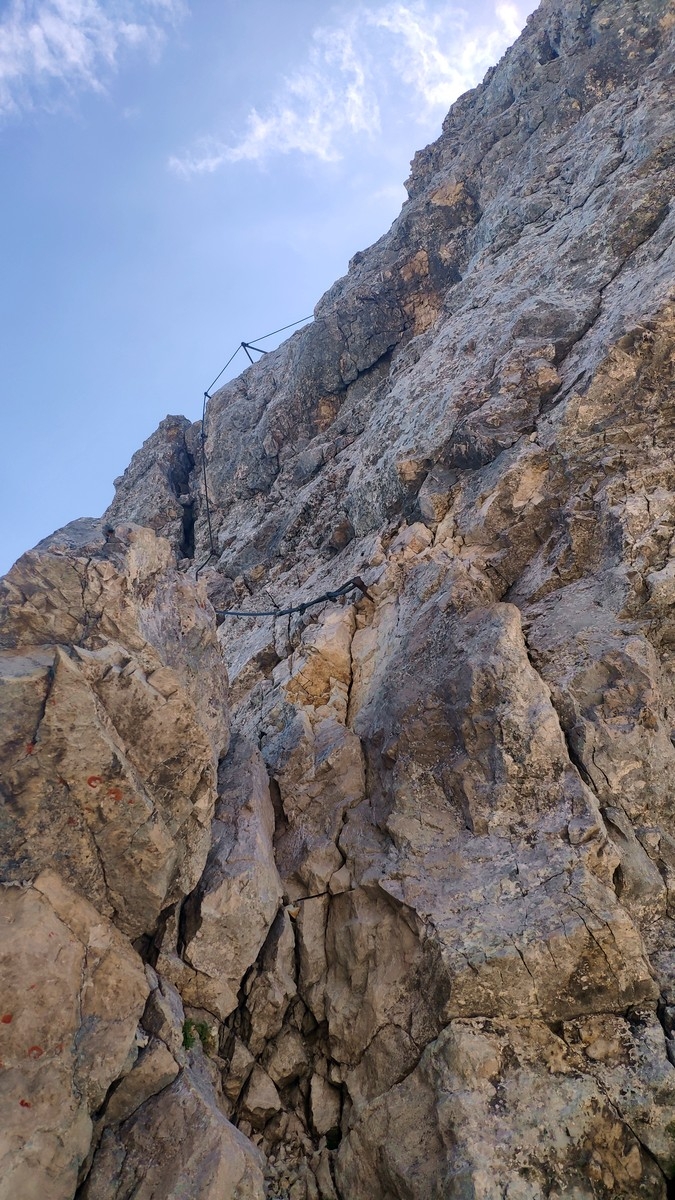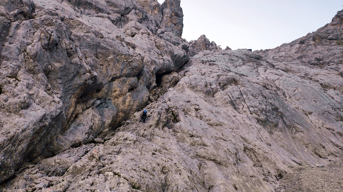- Danach lange im 1er- und 2er-Gelände mit kurzen Klettersteigen B/C.