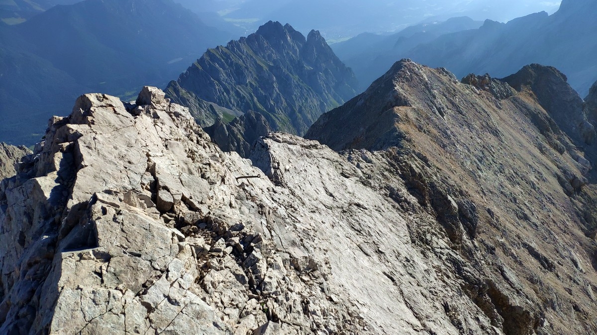 - Ist die Vollkarspitze erreicht, darf der restliche Jubi-Grat genossen werden. Über leichtes Klettern (1) und A/B Steige hinab zur Wand des Hochblassen.