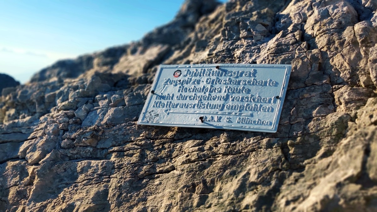 Zudem verlangt die Tour über viele Stunden lang gute Konzentration im durchgehend absturzgefährdeten Gelände, beginnend bereits vor dem Jubiläumsgrat auf dem Klettersteig vor der Zugspitze und auch nach dem Jubiläumsgrat auf dem Abstieg bis zur Bergstation der Alpspitze.