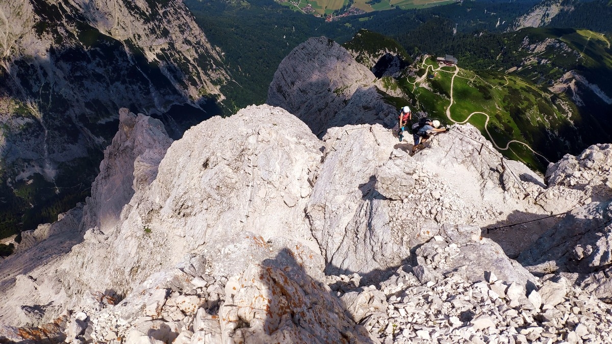 - Über den A/B-Steig mehrere hundert Höhenmeter bergauf bis zum Grat kurz vor der Zugspitze. Wem dieser Klettersteig bereits sehr fordert, der sollte den Jubiläumsgrat definitiv sein lassen.