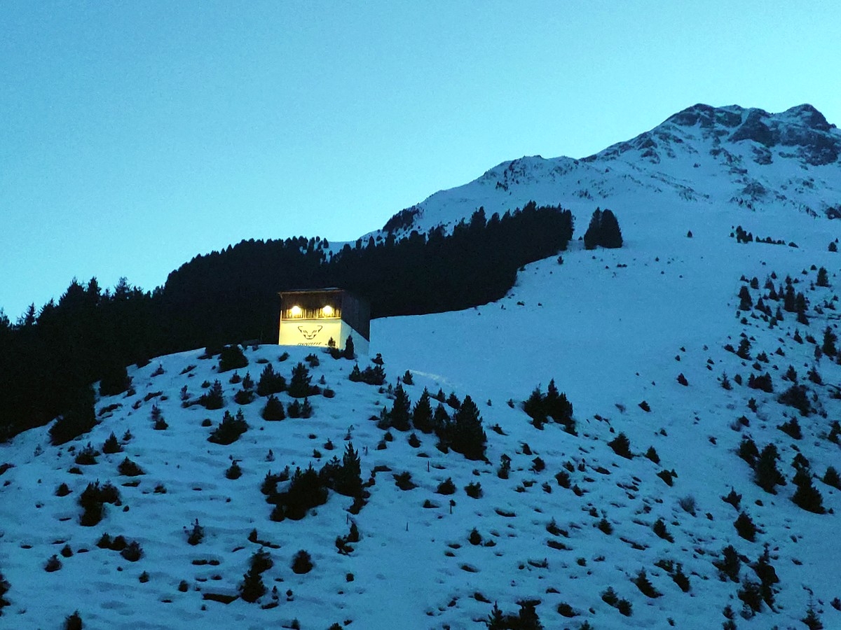 - Auf etwa 2.150 Metern Höhe (Kögelhütte) ist das Ende der Rodelbahn erreicht, danach über das Gelände weiter aufsteigen. Steigspuren sind zumeist sichtbar, da die Lampsenspitze im Winter sehr oft besucht wird.