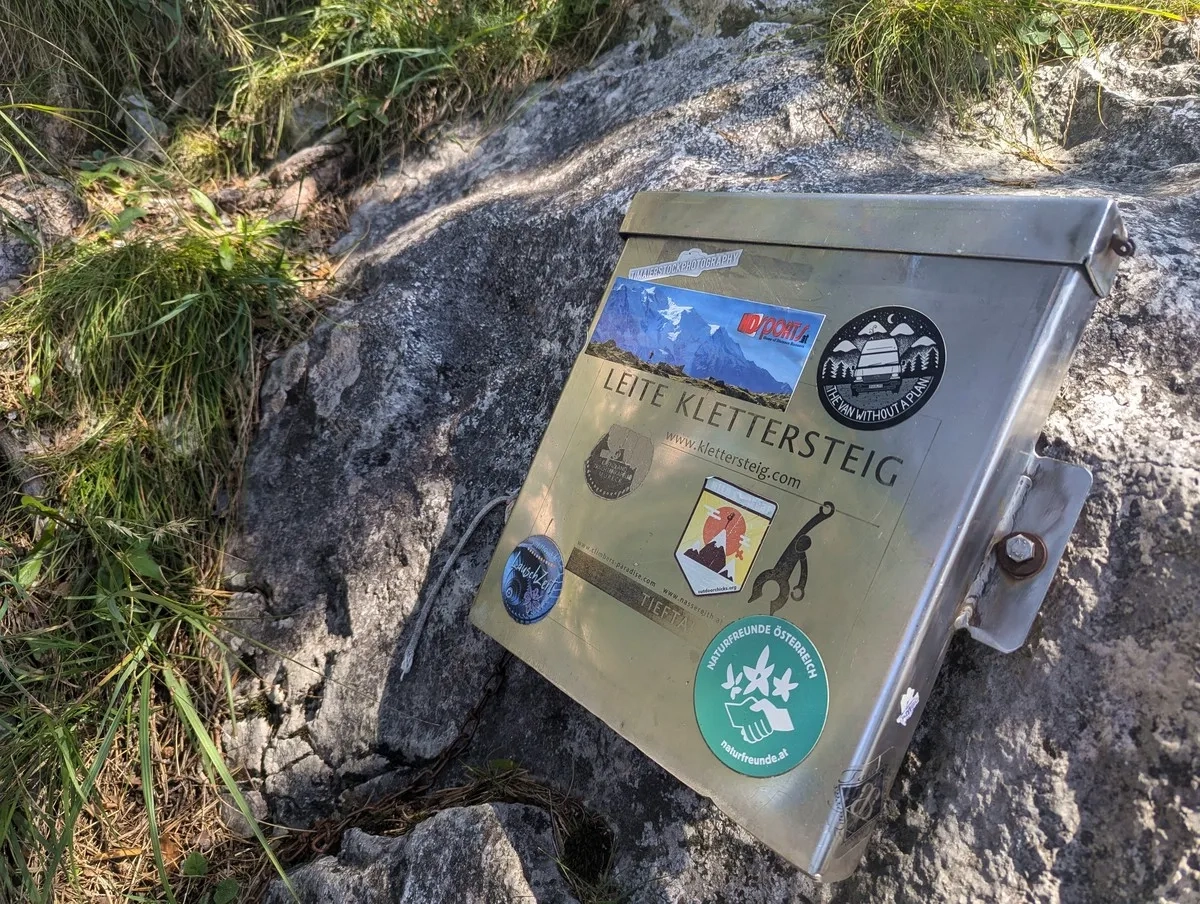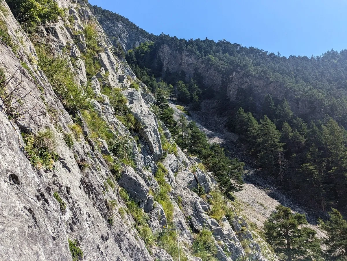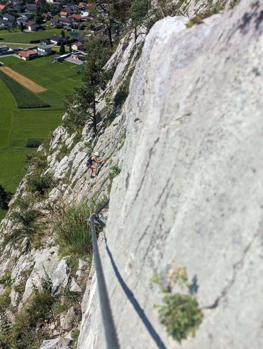 Die Steinschlaggefahr durch Klettersteig-Geher oberhalb ist ein zusätzliches Sicherheitsrisiko.