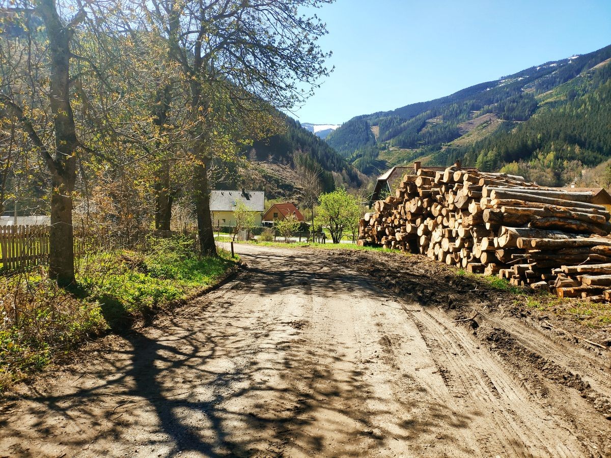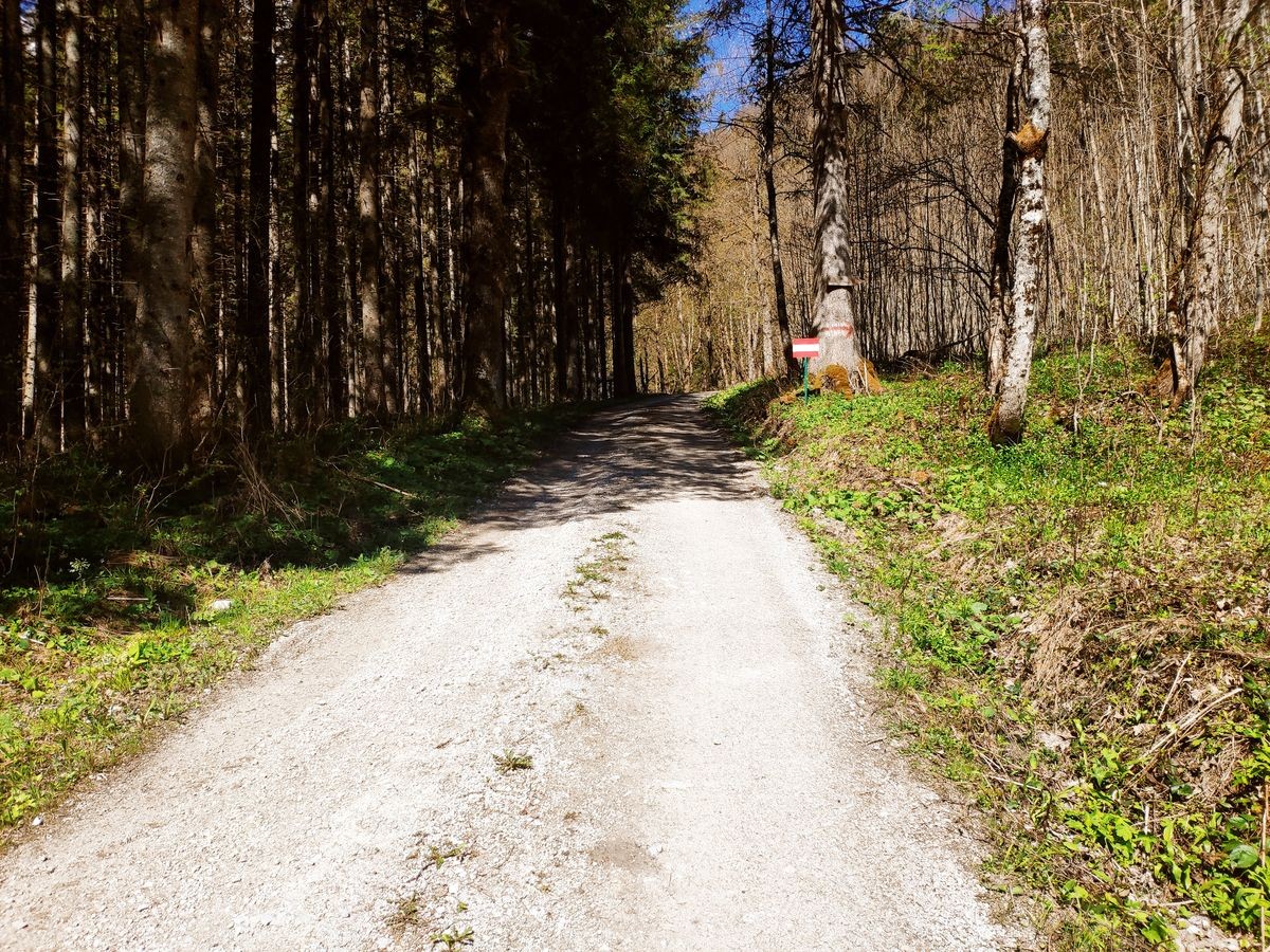 Lugauer Überschreitung 06: Theoretisch kann man bergauf auch länger dem Güterweg folgen