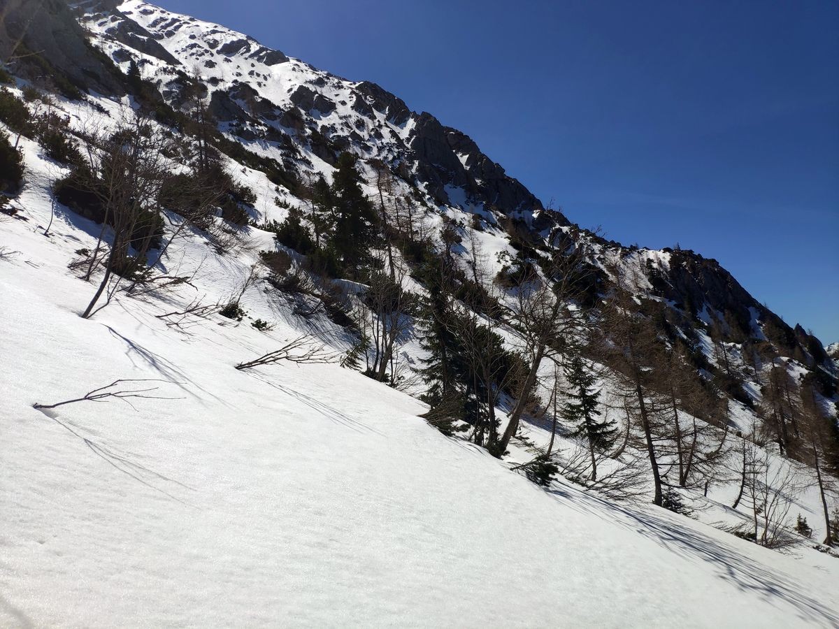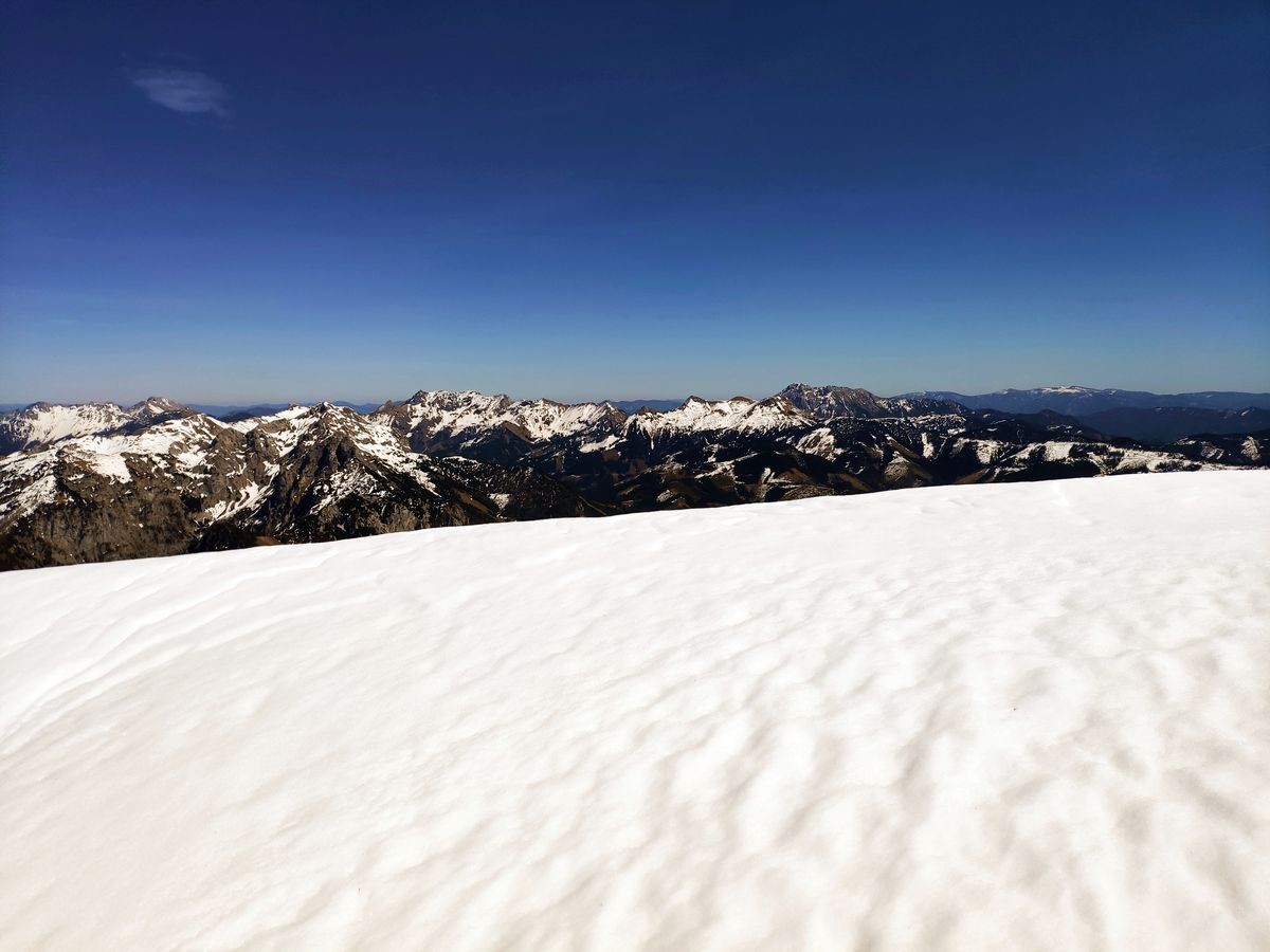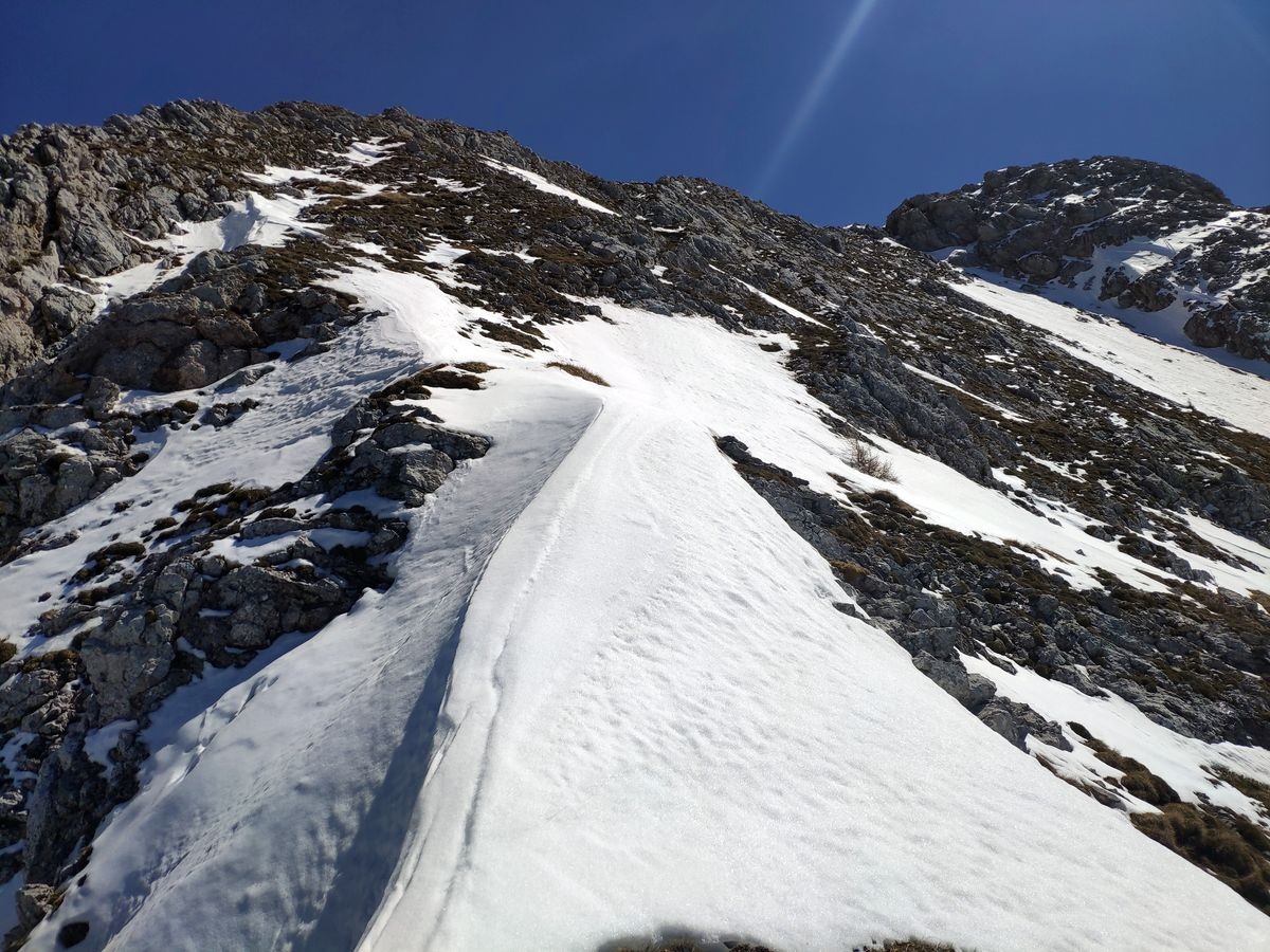 Lugauer Überschreitung 09: Im Sommer ist die Route gut zu sehen, Anfang Mai bei viel Schnee hingegen nur sehr schwer