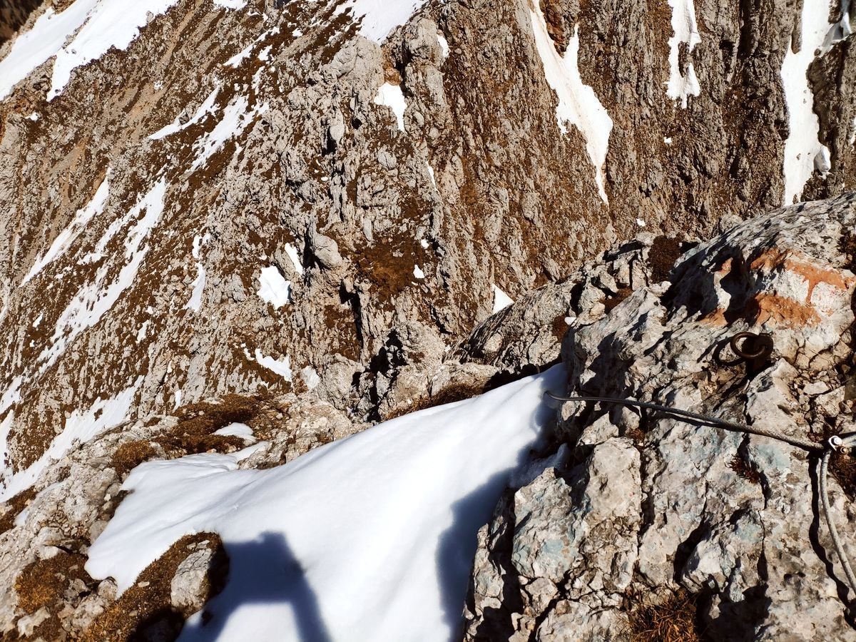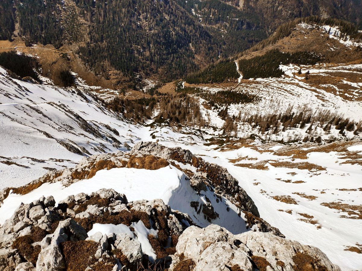 Lugauer Überschreitung 16: Gegen Ende des Aufstieges habe ich die Originalroute aufgrund des tiefen Schnees verlassen und einen Felsen als Weiterweg genommen