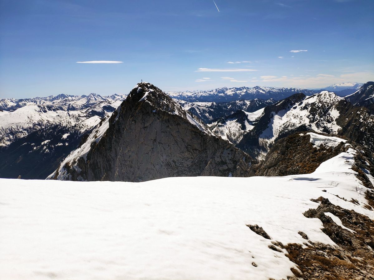 Lugauer Überschreitung 18: Rechts der Hauptgipfel. Etwas versteckt