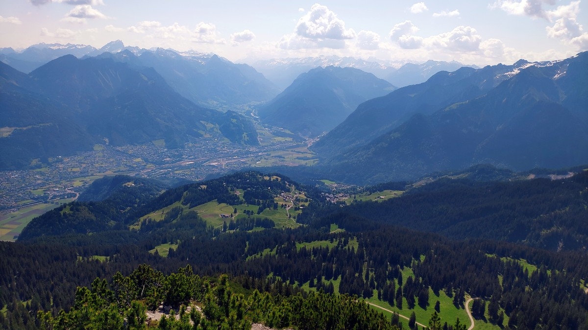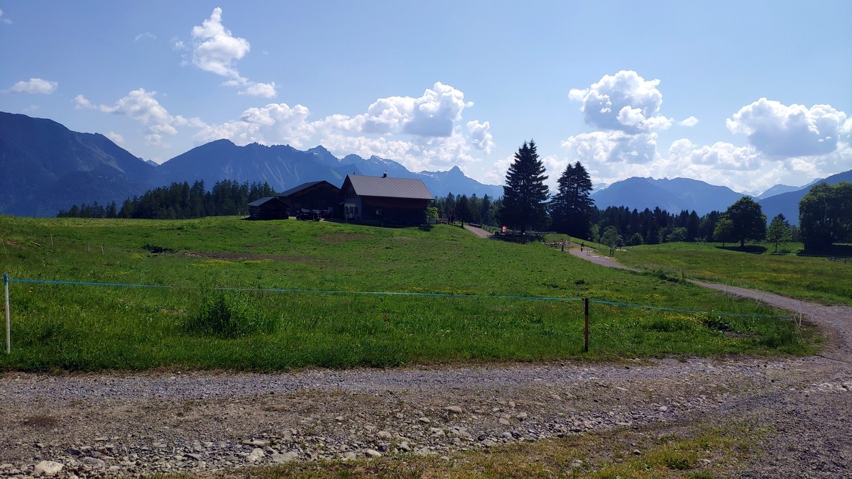 - Gleich danach rechts zur Alpe Rona und auf einem Wanderweg mehrmals die Forststraße queren.