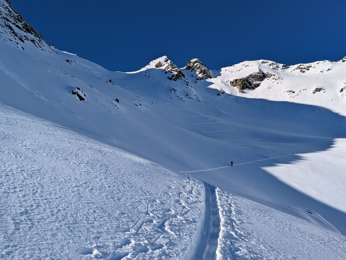 In Summe sind es gut 1.600 Höhenmeter, die zurückgelegt werden müssen. Aufgrund der zwei Steilhänge sollte die Tour nur bei sicherer Lawinenlage umgesetzt werden.