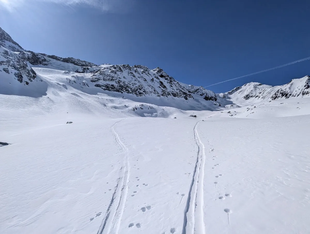 Eine alpine Skitour mit Gletscherkontakt, überwiegend flach bis moderat steil. Nur im Schlussabschnitt wird es ernst. Mit rund 24 km Länge und 1.600 Höhenmetern fordert die Tour durchaus Kondition, aber keine Sorge, die Pausen mit Aussicht sind allemal ein guter Anreiz.