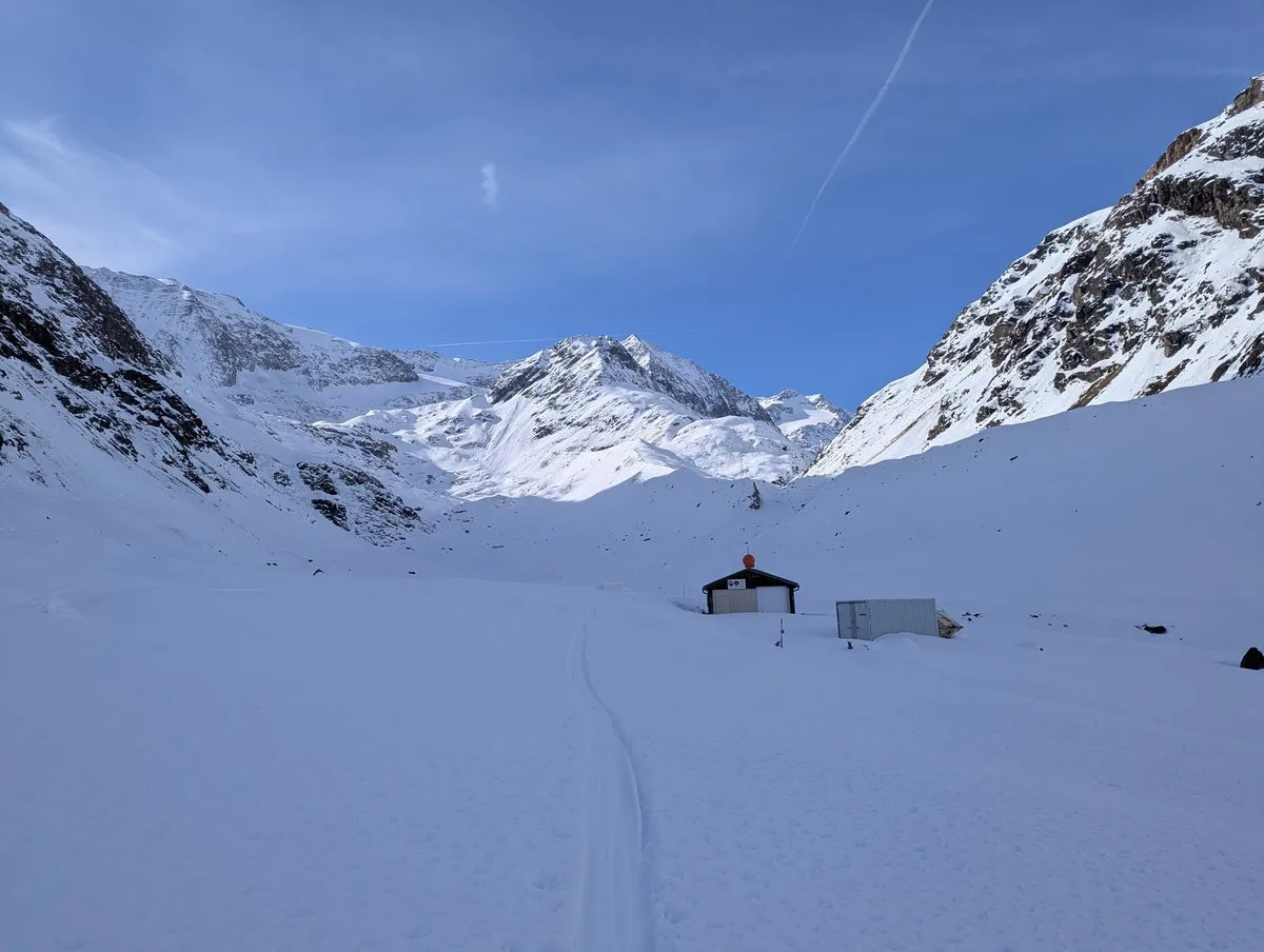 Komplette Skitourenausrüstung inklusive LVS-Set und Helm. Gletscherausrüstung ist normalerweise nicht erforderlich, solange genug Schnee liegt. Wer trotzdem ein bisschen Alpin-Feeling will, darf sie gerne einpacken. Safety first!