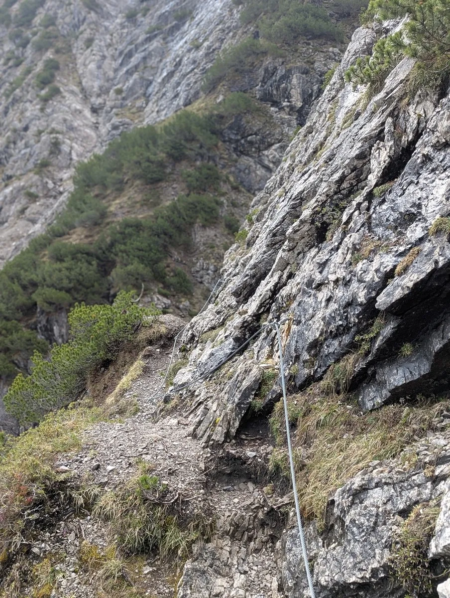 - Etwa auf halber Strecke kann man die Hauptroute verlassen und über einen Klettersteig aufsteigen. Zwei Varianten stehen zur Wahl: Eine B/C-Variante (ideal zum Aufwärmen) oder die sportlichere D-Route mit luftiger Seilbrücke. Der Grat ruft – aber erst mal bitte die Klettersteig-Taufe überstehen.