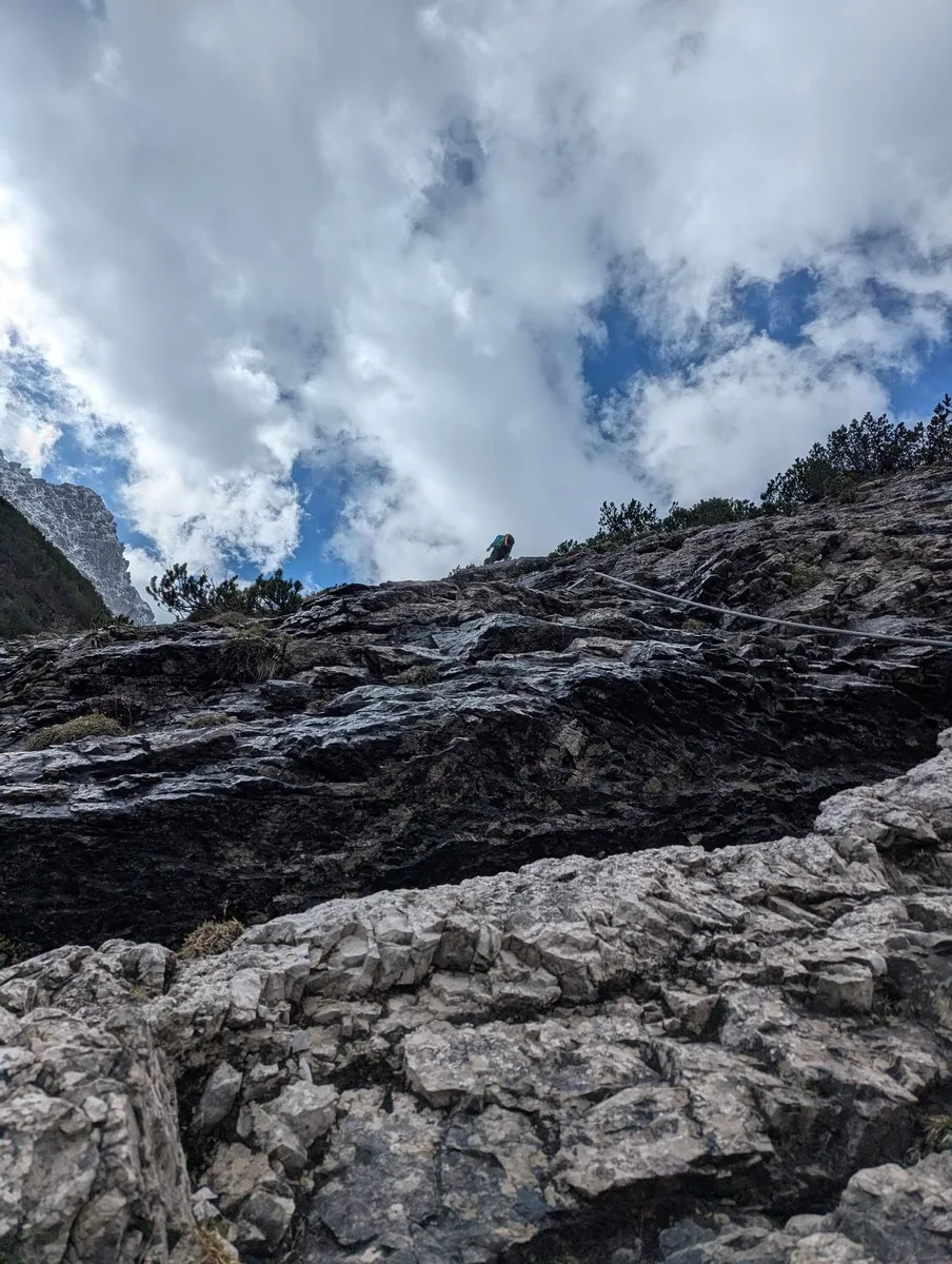 Spannend ist auch die geologische Struktur des Berges: Der Plattigspitz-Grat besteht größtenteils aus Hauptdolomit – griffig, kantig und in den Morgenstunden wunderbar sonnenbeschienen. Ein perfektes Terrain für eine klassische Alpinkletterei.