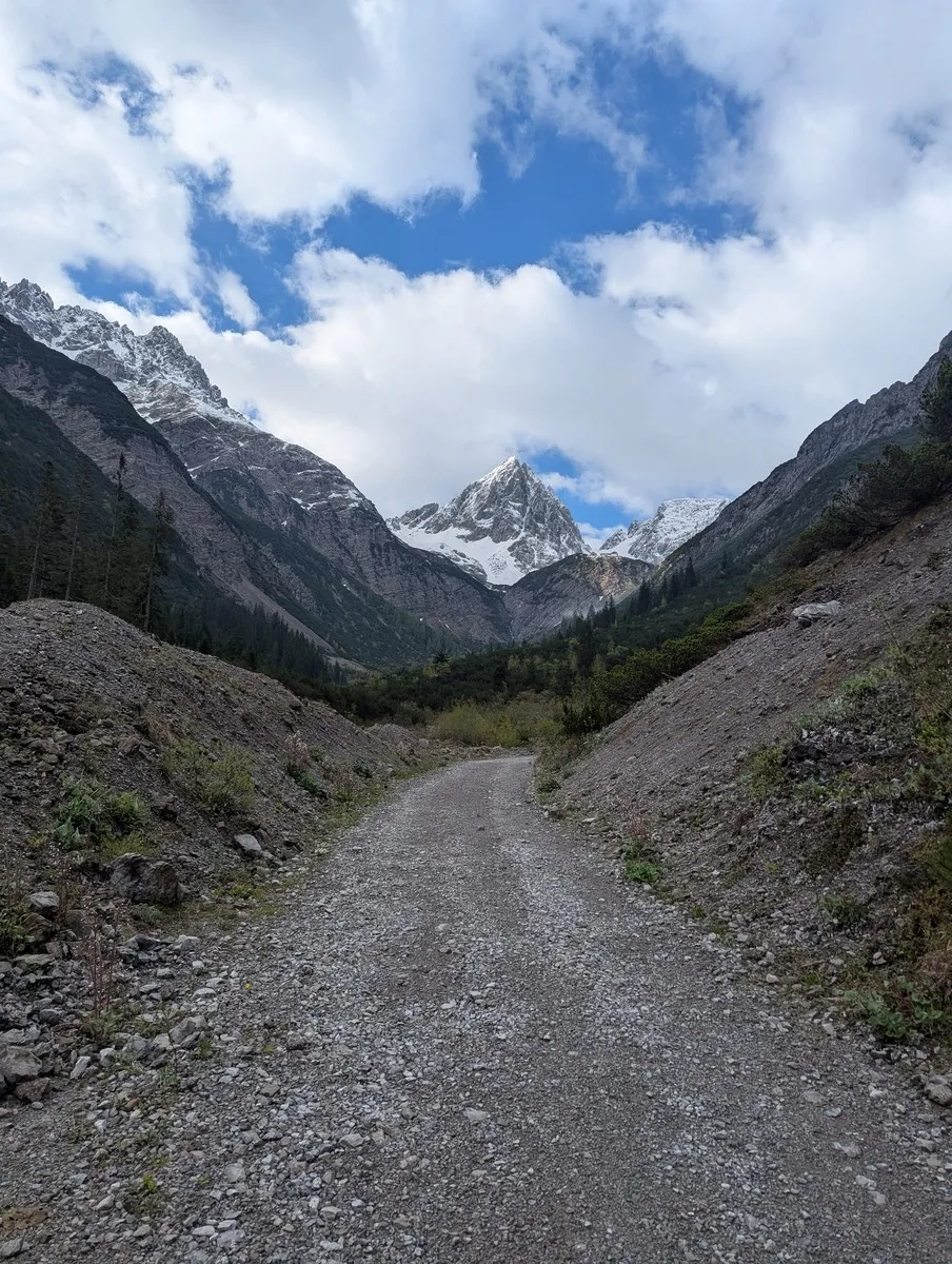 - Die ersten 3 Kilometer führen gemütlich über eine Forststraße bis zur Materialseilbahn der Hanauer Hütte – bis hierhin darf das Mountainbike zum Einsatz kommen.