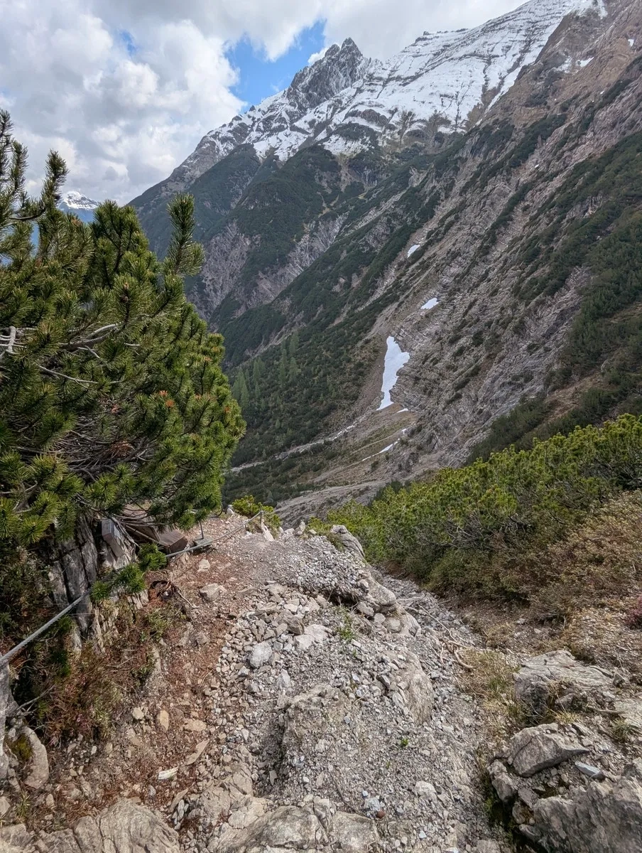 Der Ostgrat der Östlichen Plattigspitze (2.548 m) ist ein echter Geheimtipp für Kletterfreunde, die nicht auf überlaufenen Routen unterwegs sein möchten. Laut Gipfelbuch verirren sich hier nur selten Seilschaften her – beste Voraussetzungen also für ein stilles Bergerlebnis abseits der Massen. Die Tour bietet durchgehend Felskletterei im zweiten bis maximal dritten Schwierigkeitsgrad und eine beeindruckende Aussicht auf die wilde Landschaft der Lechtaler Alpen.