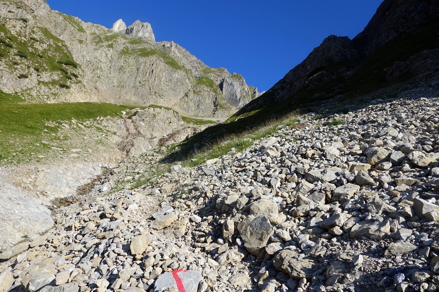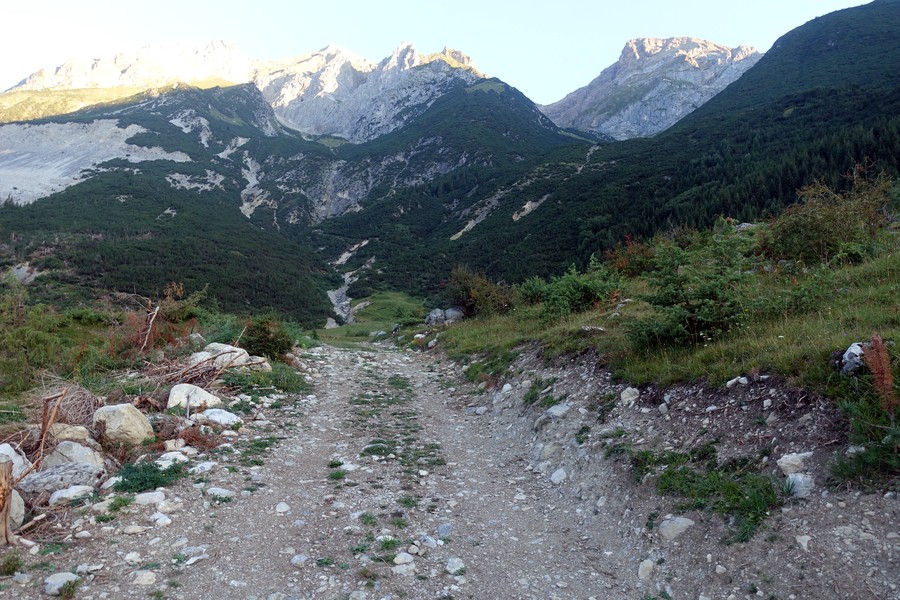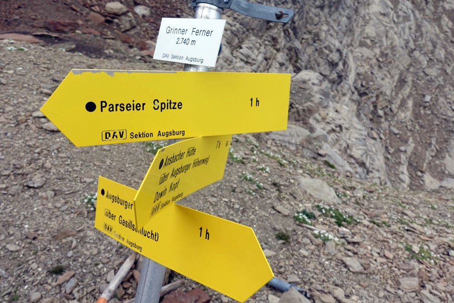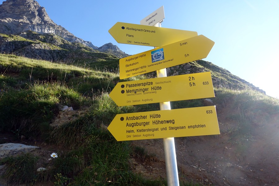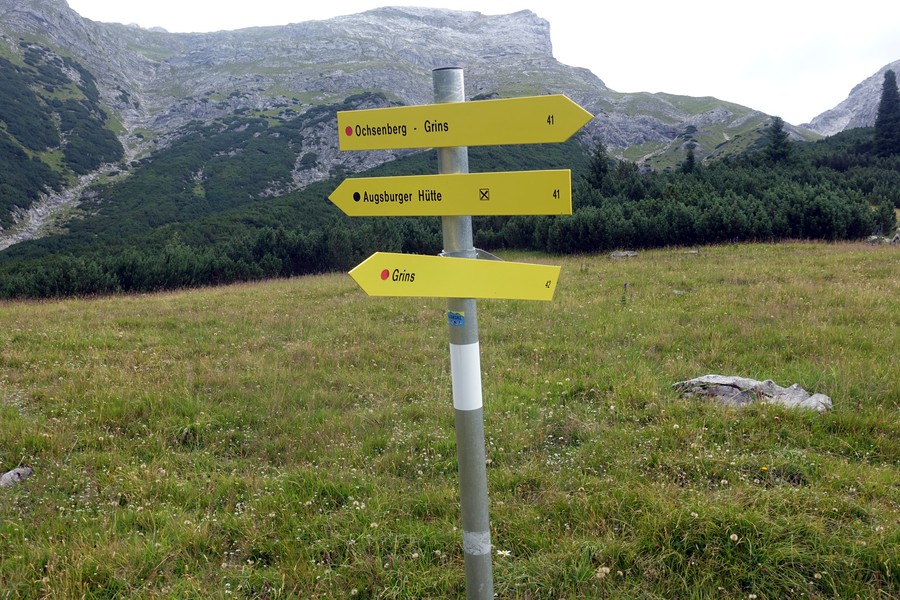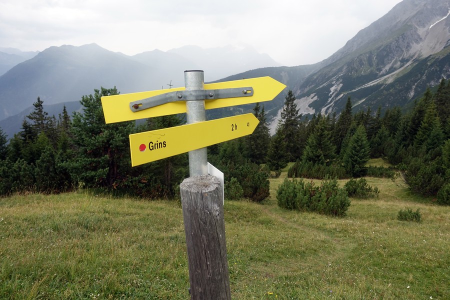- Abstieg: Vor der Augsburgerhütte der Markierung Richtung Grins folgen (dadurch deutlich kürzerer Abstiegsweg)
