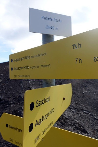 Kurze Routenbeschreibung: Parkplatz Schwimmbad Grims - Augsburger Hütte (2,5 Stunden) - Gatschkopf (1,5 Stunden) - Patrolscharte (15 min) - Ostgrat (1 Stunde) - markierter Normalweg zur Augsburger Hütte (2 Stunden) - Weg 41 Richtung Ochsenberg-Grins - Ochsenberghütte - Weg 41 Richtung Grins - Parkplatz Grins (2 Stunden)