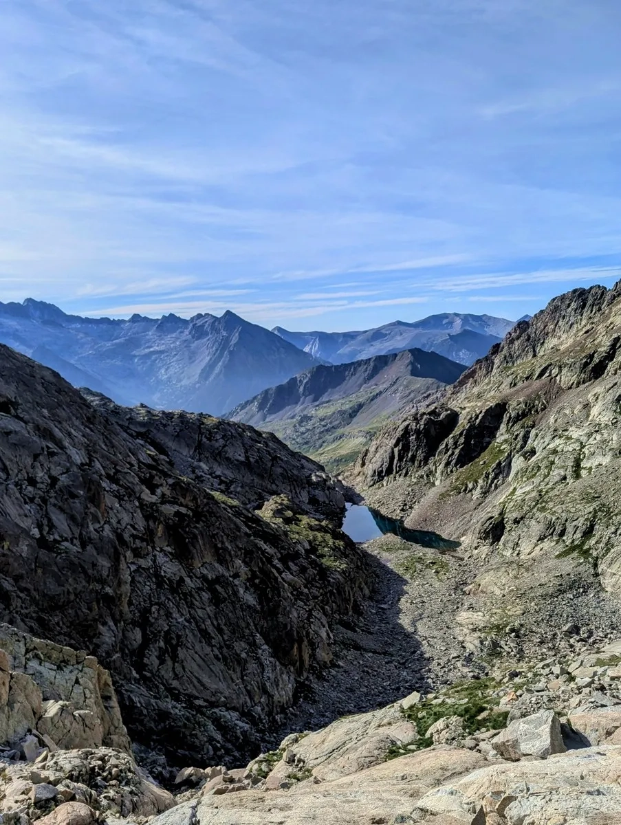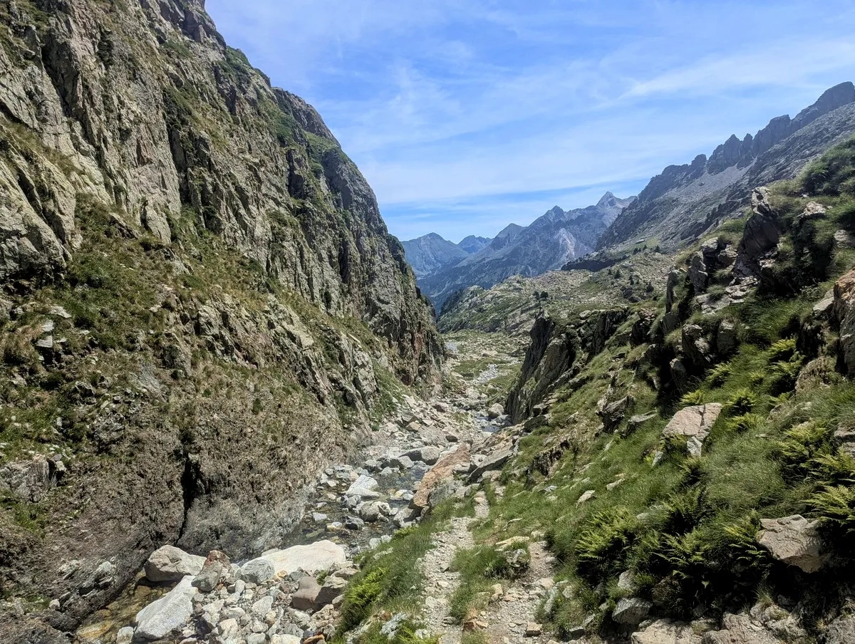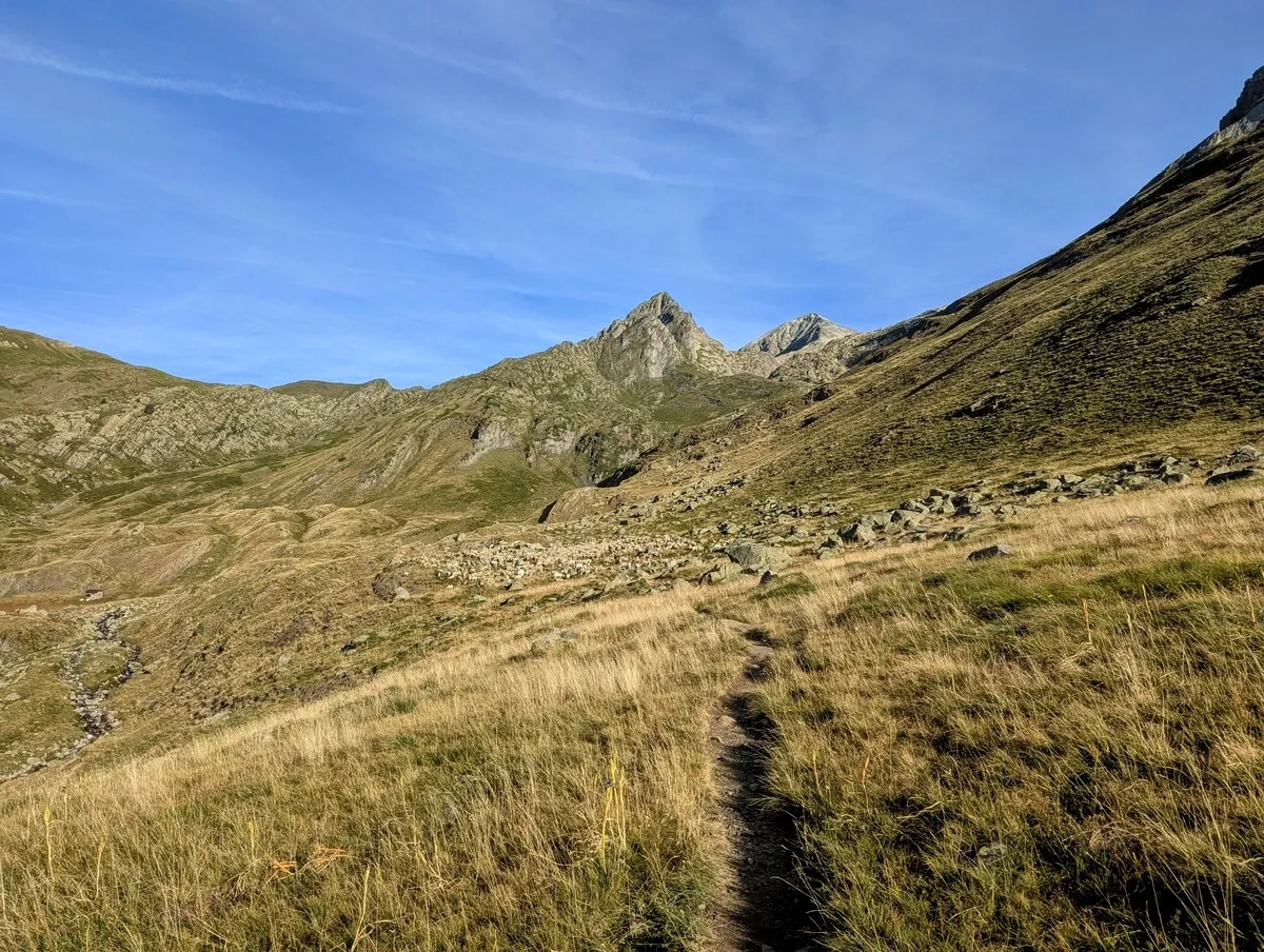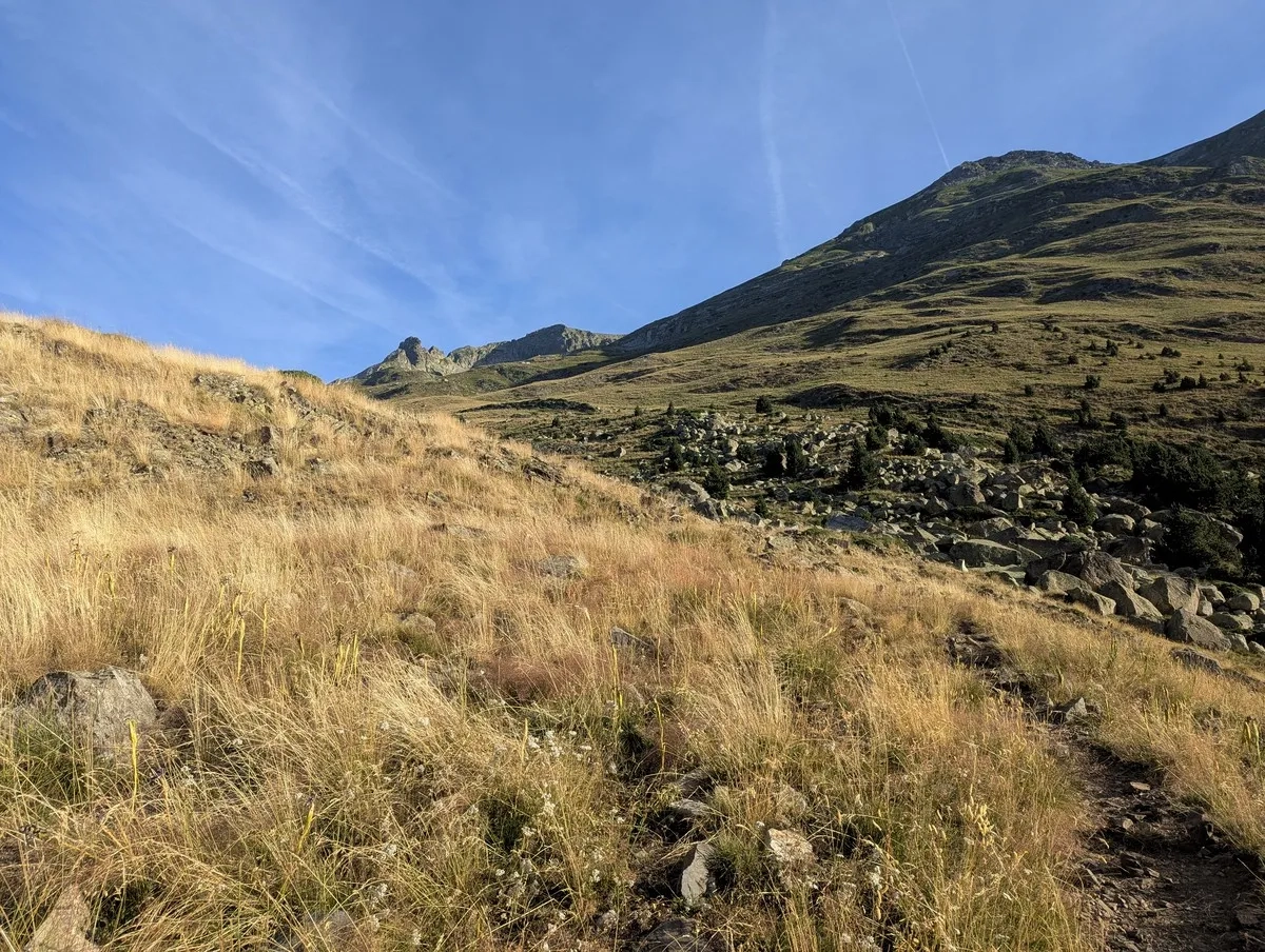 Typisch Pyrenäen: Es gibt kaum Markierungen, dafür umso mehr Abenteuer. Die größte Herausforderung ist die Wegfindung – besonders in höheren Lagen. Kletterstellen? Fehlanzeige. Dafür Geröll, ausgesetzte Passagen und viel Gelände, das man mit gesundem Hausverstand liest wie ein Comicbuch.