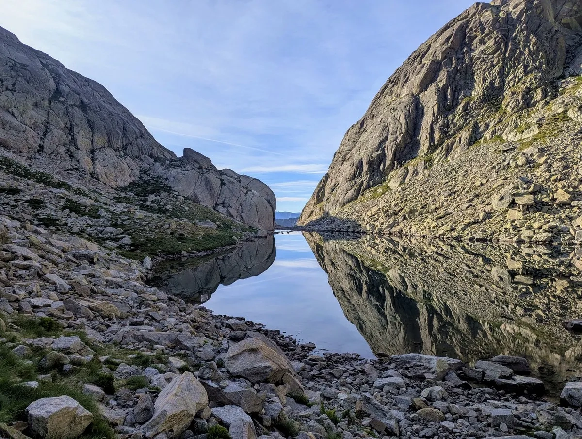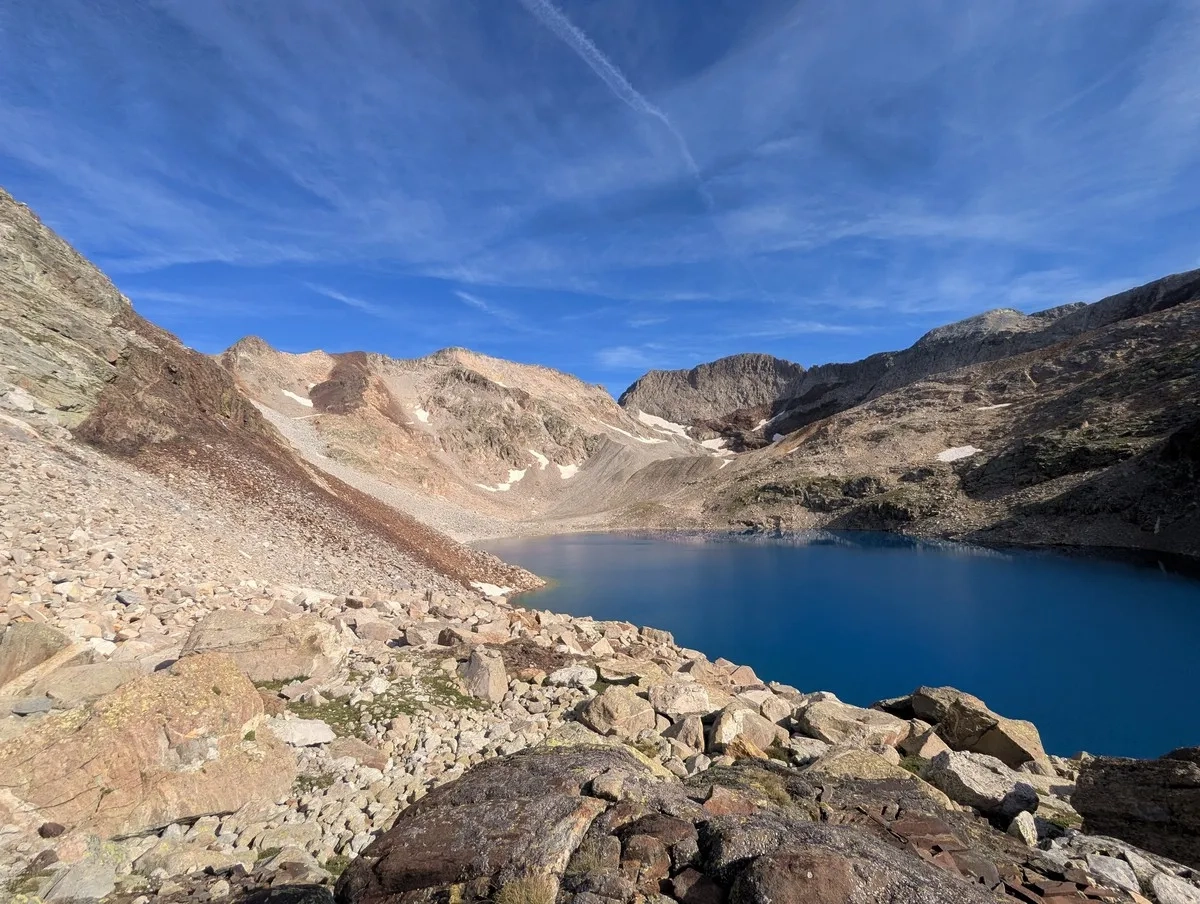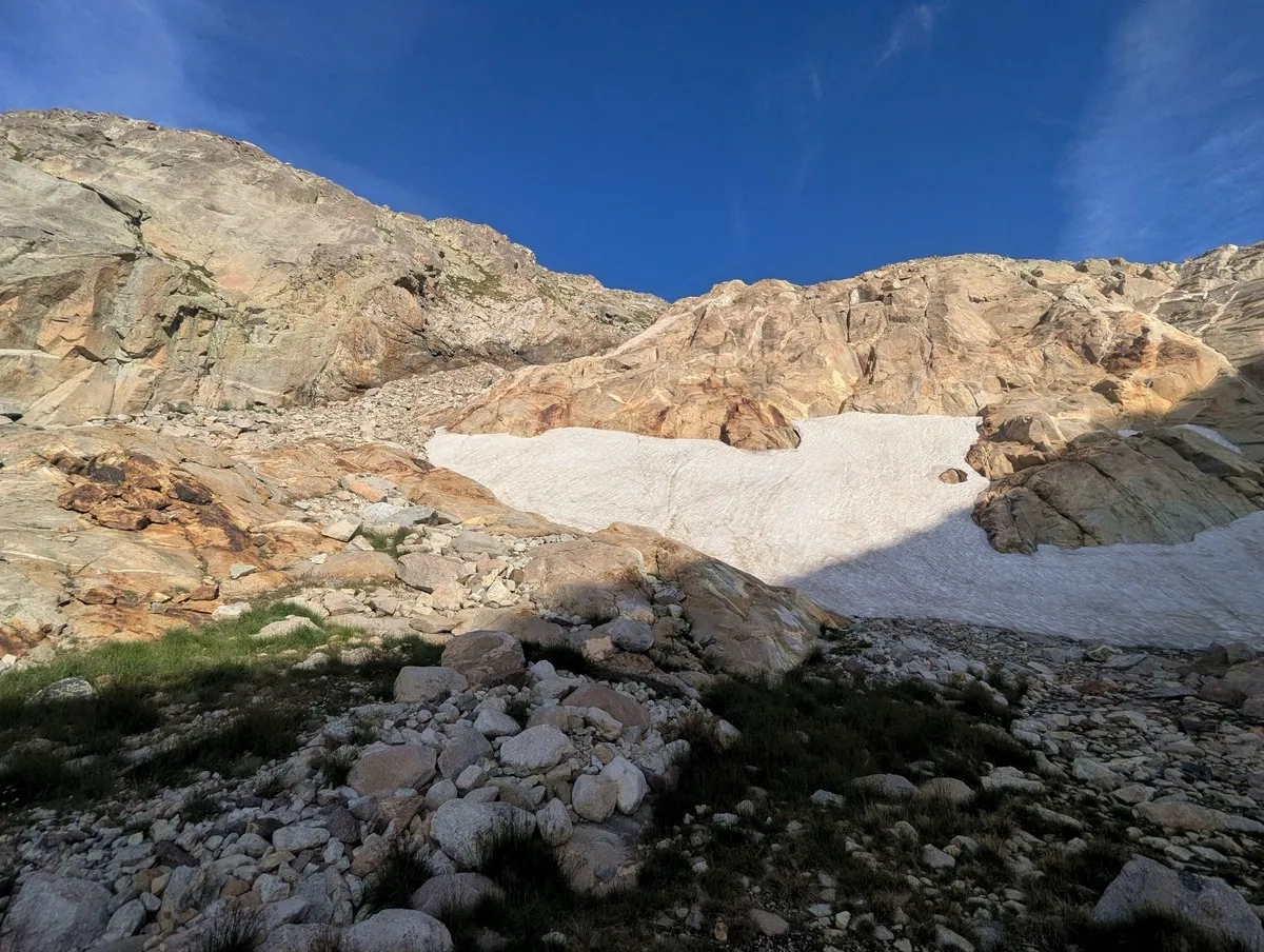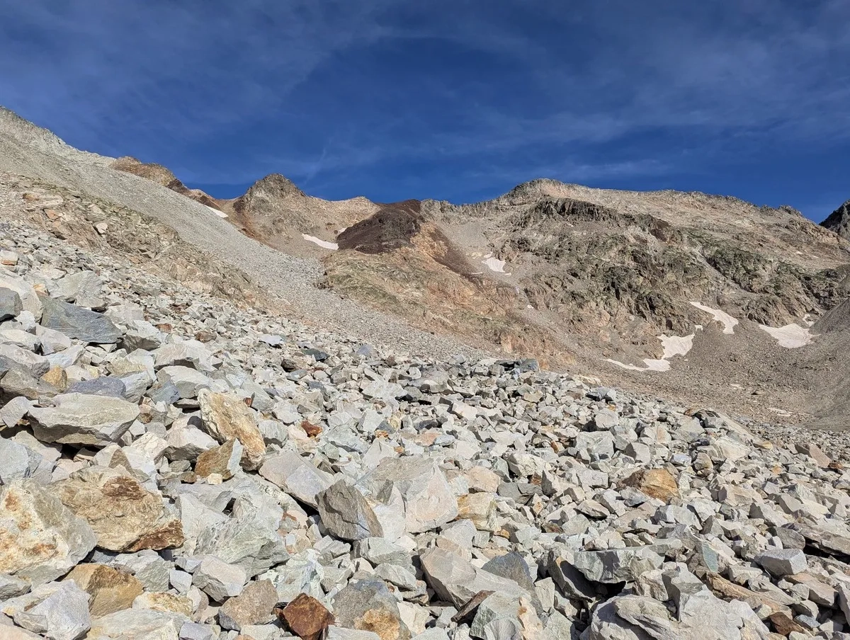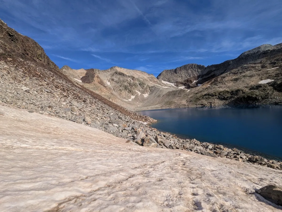 - Der See wird links passiert. Weiter geht’s über ein riesiges Geröllfeld – keine Wegmarkierungen, dafür echtes Abenteuer. Trittsicherheit ist hier kein Nice-to-have, sondern Pflicht.
