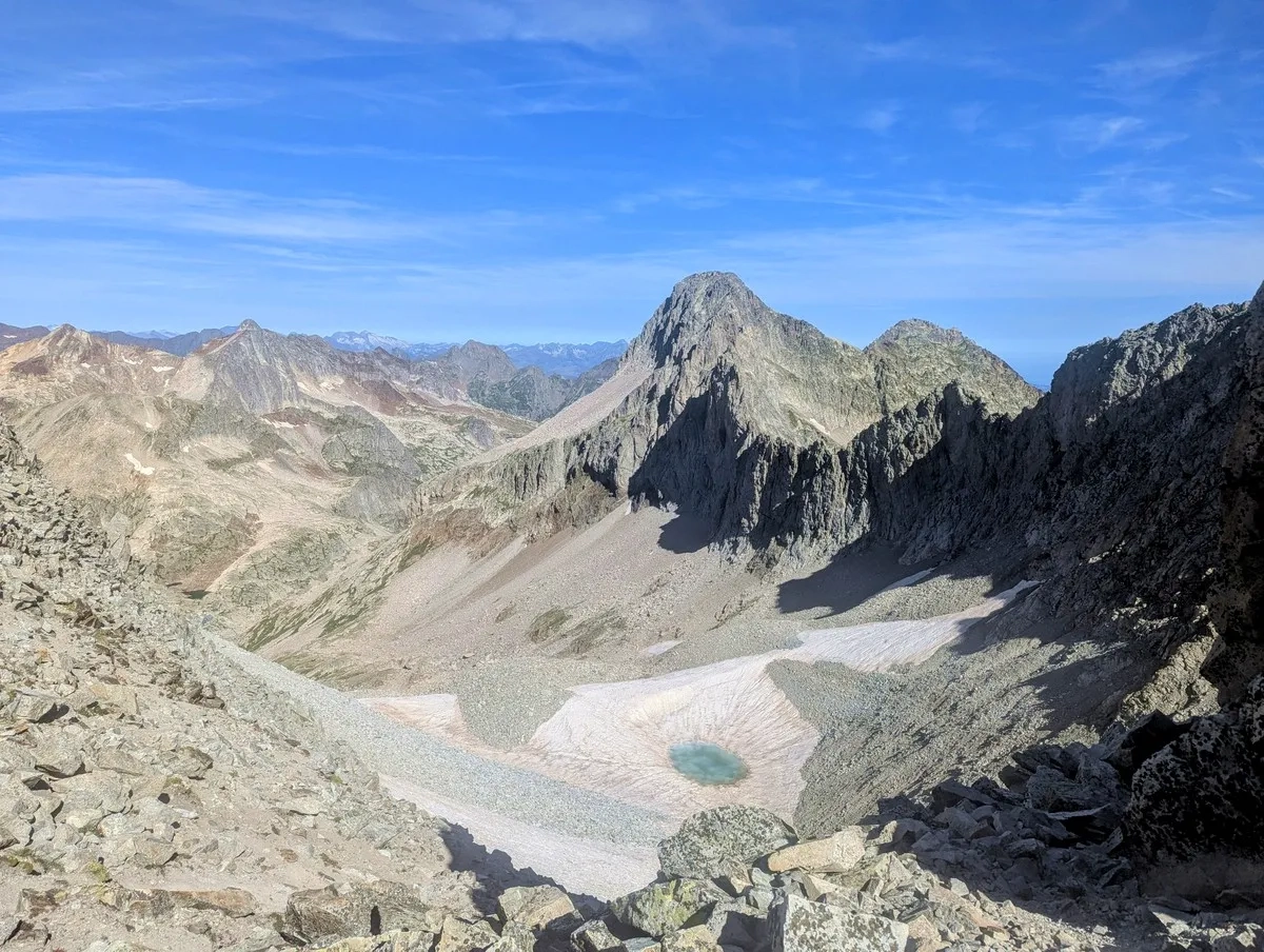 Der Perdiguero (französisch: Pic Perdiguère) ist ein beeindruckender 3.222 Meter hoher Grenzberg in den zentralen Pyrenäen, der direkt auf der spanisch-französischen Grenze thront.