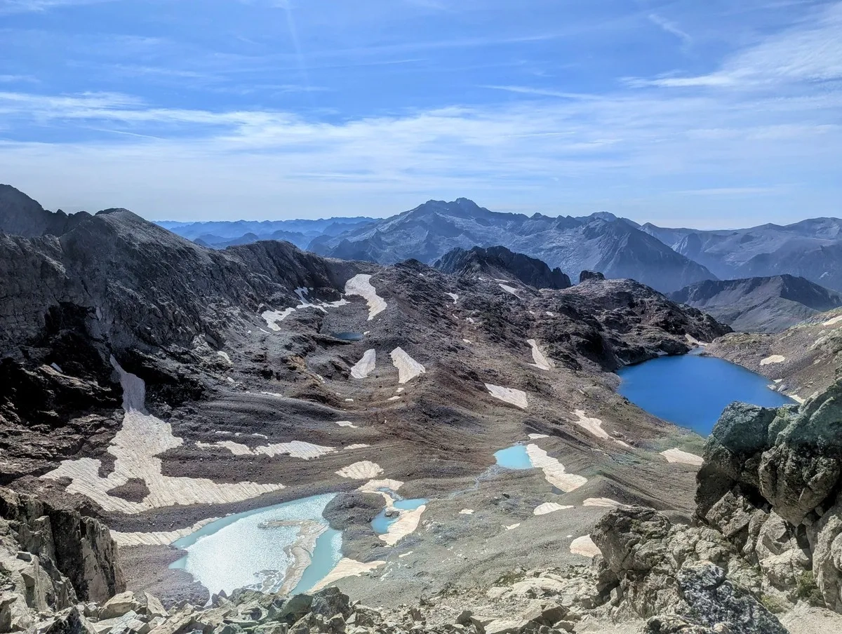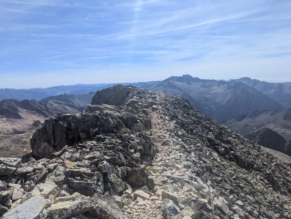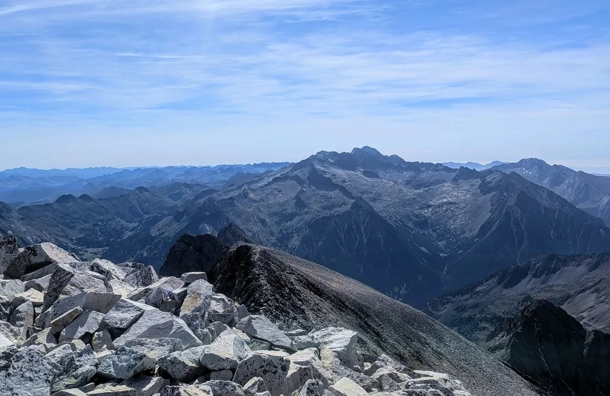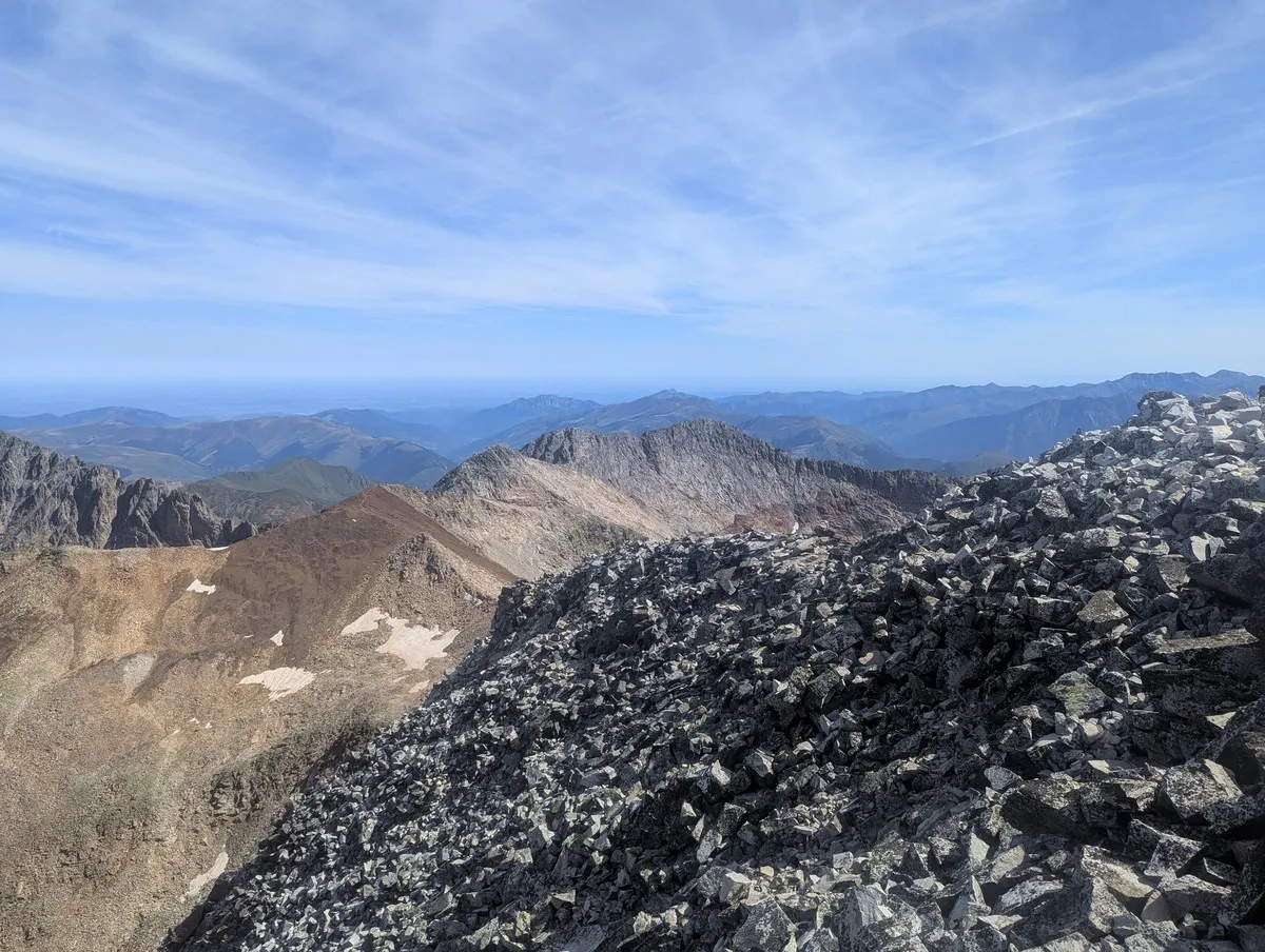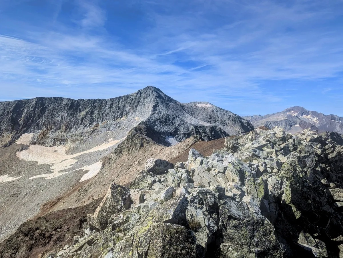 - Schließlich, nach etwa 1.800 Höhenmetern: Der Gipfel des Perdiguero! Hier steht man mit offenem Mund zwischen zwei Welten: Blick auf den spanischen Aneto und den französischen Pic Posets – den beiden höchsten Bergen der Pyrenäen. Besser geht’s kaum.