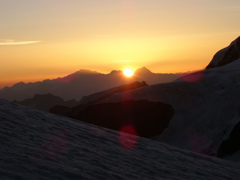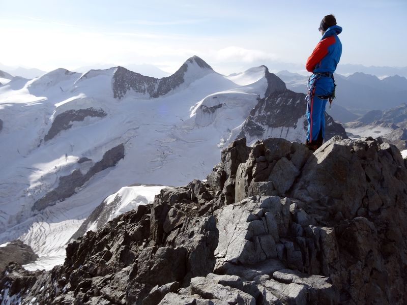 Der Gipfel des Bernina (4.049 m) liegt gerade noch in der Schweiz, nur zweihundert Meter weiter südlich beginnt bereits Italien. Vom Piz Bernina hat man im Idealfall eine Sicht auf über 300 km weit.