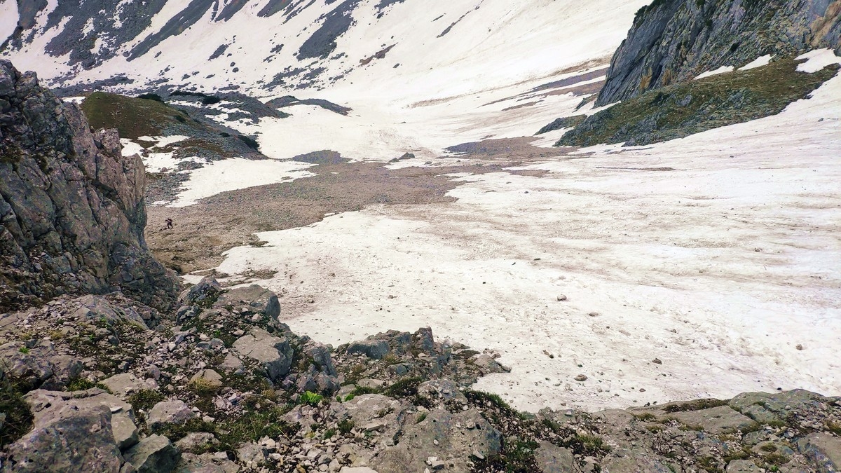 - Vom Winkelkar folgt nun über rund 500 Höhenmeter der anspruchsvollste Abschnitt der Route: Der Aufstieg zur Pyramidenspitze, teilweise auch über einen Klettersteig (A/B), großteils im steilen Gelände.