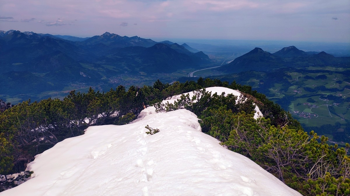 - Danach führt ein langer sanfter Abstieg Richtung Petersköpfl auf 1.745 Metern Höhe. Dieser ist zumeist bereits sehr stark besucht, genauso auch die 1.633 Meter hohe Naunspitze, die nur kurze Zeit später nach einem kurzen Gegenanstieg der letzte Gipfel des Tages ist.
