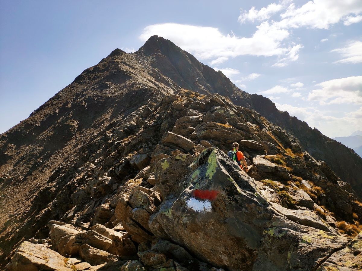 - Der letzte Abschnitt führt über den Grat auf den Gipfel. Ab und zu werden die Hände benötigt