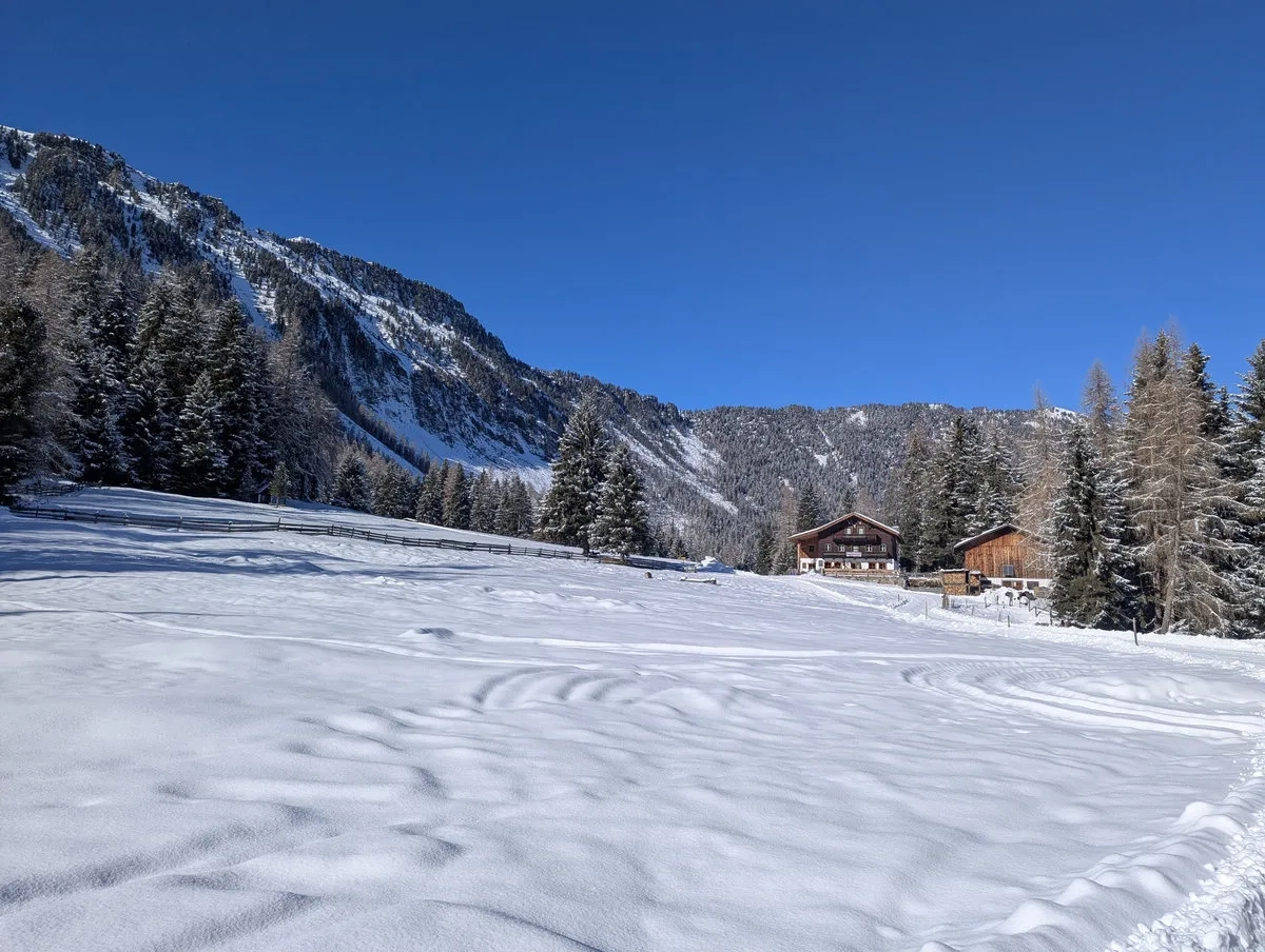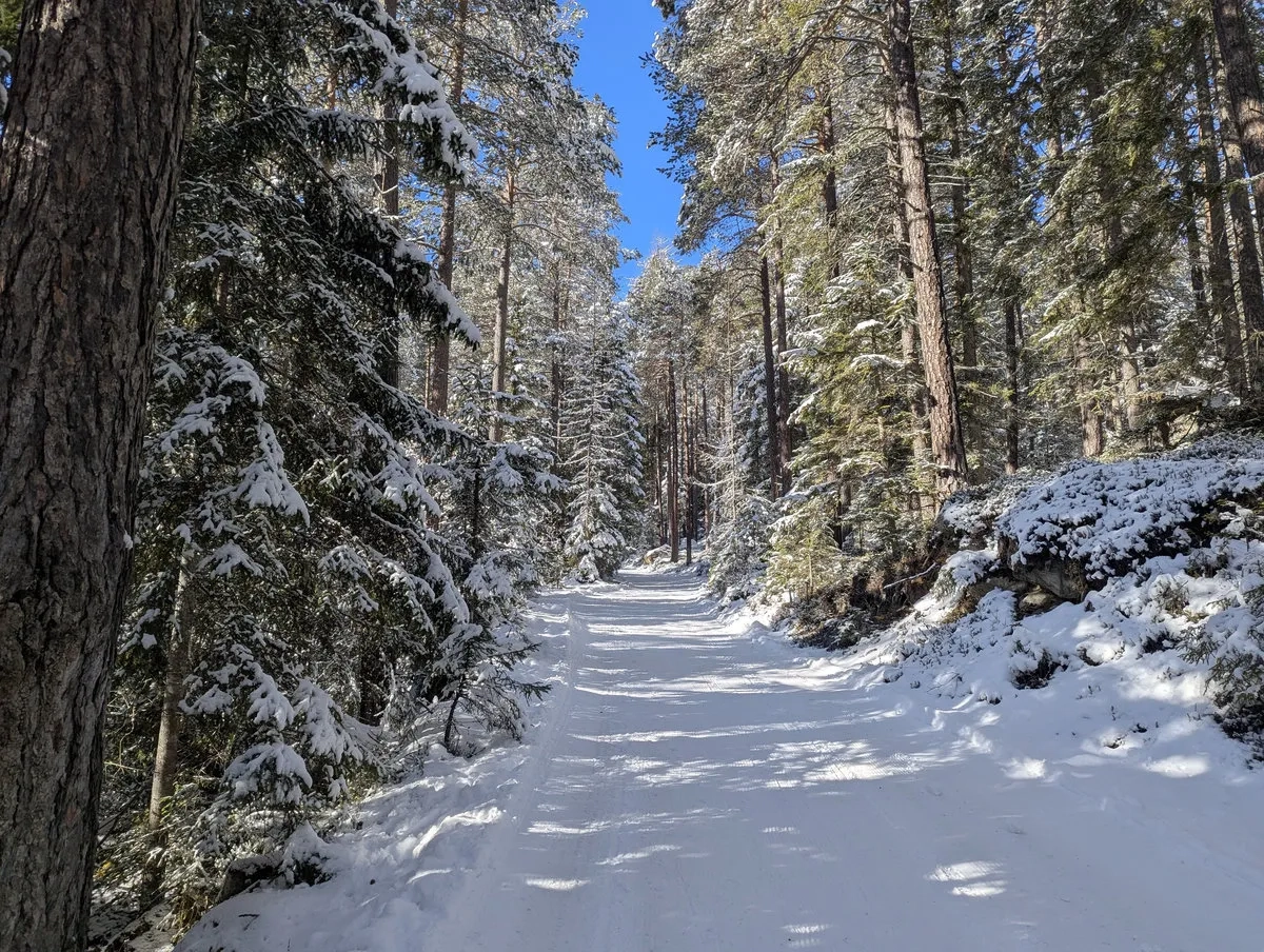 Auch landschaftlich weiß die Wanderung zu überzeugen. Der Blick reicht über das vordere Ötztal, während sich der Weg gemütlich durch dichten Wald schlängelt. Wer genau hinschaut, entdeckt unterwegs immer wieder kleine Lichtungen, alte Holzstapel und mit etwas Glück Wildspuren im Schnee. Kein Nervenkitzelberg, sondern ein Wanderung mit Charakter. Und mit Humor, denn spätestens bei der Abfahrt wird klar: Der Aufstieg war nur die halbe Miete.