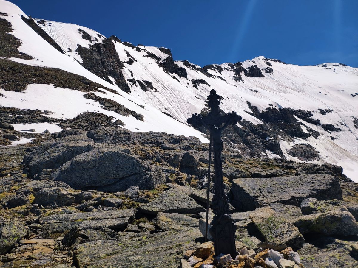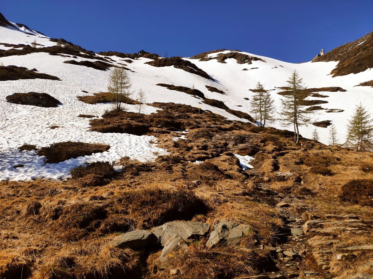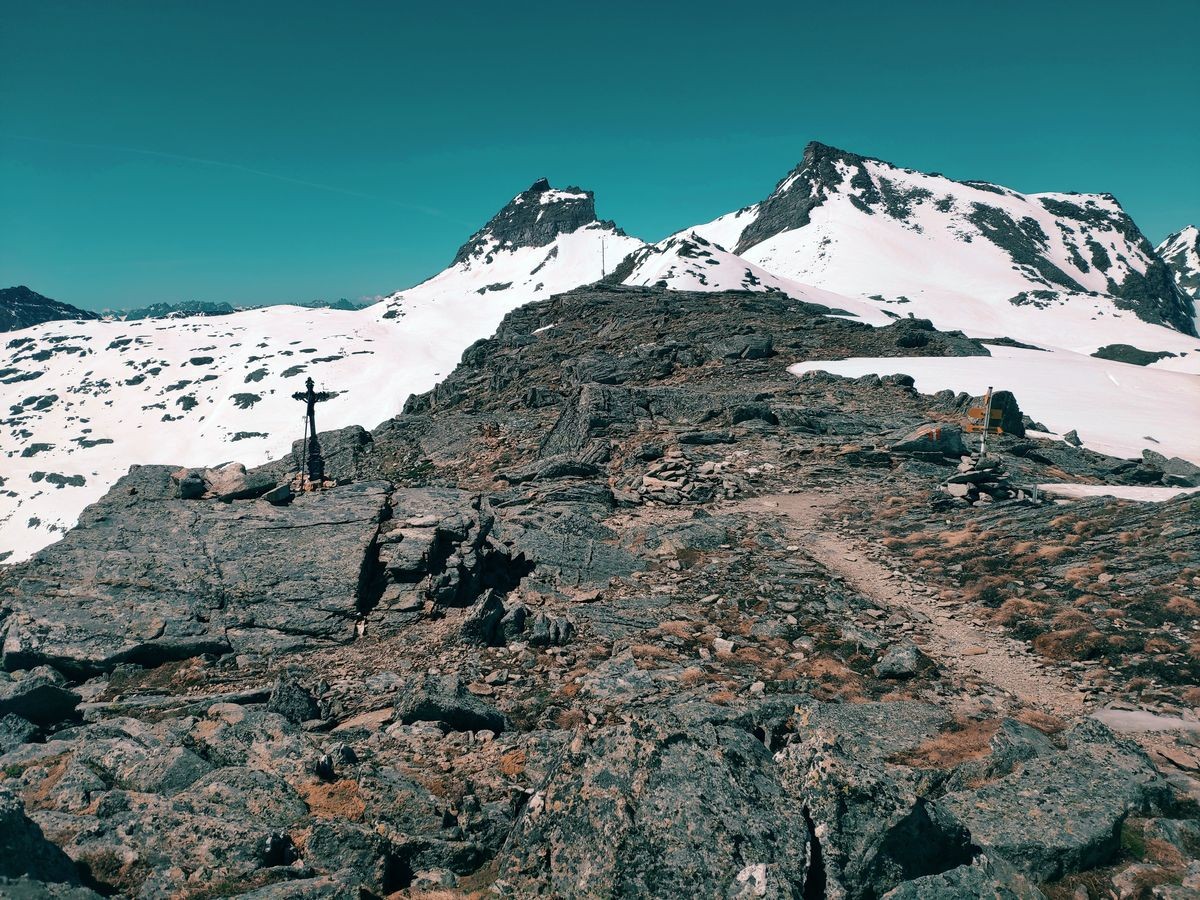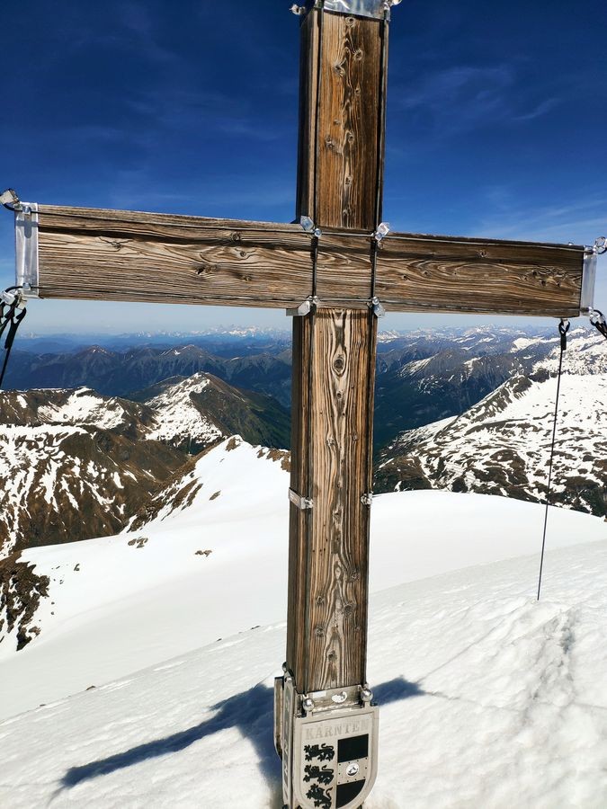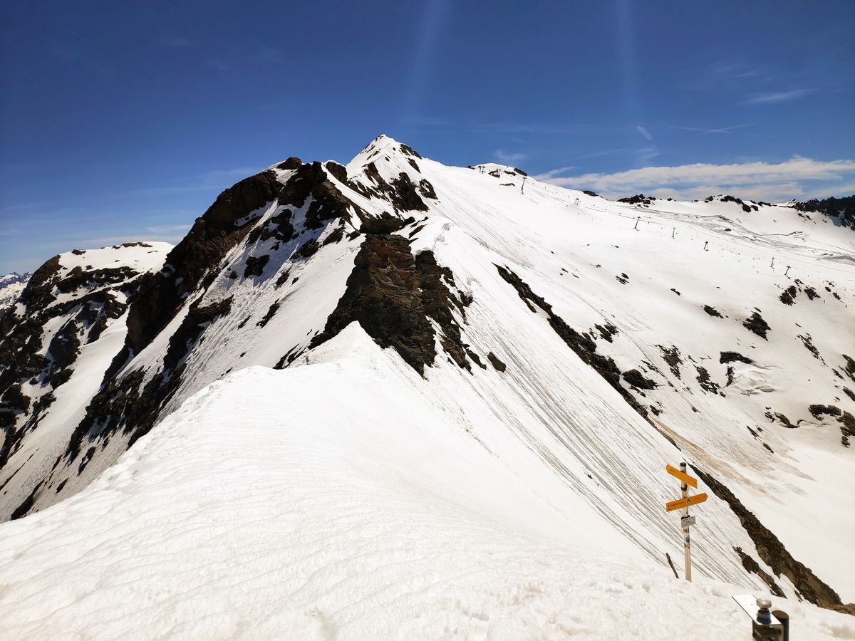 - Auf der Fraganter Scharte könnte man nun links auf die Herzog-Ernst-Spitze (2.933 m) aufsteigen und nun dem Grat (beschildert) zum Schareck folgen. Diese Route ist deutlich kürzer, aber bei Schnee im Worst Case nicht zu begehen (war Mitte Juni 2021 der Fall). Ansonsten von der Fraganter Scharte den Tauern Höhenweg Richtung Duisburger Hütte absteigen