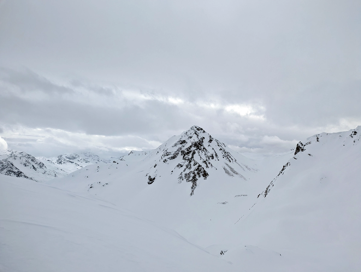 Diese Skitour im Verwall führt vom Parkplatz der Friedrichshafener Hütte in der Nähe von Mathon über die Hütte auf die Hohen Köpfe.