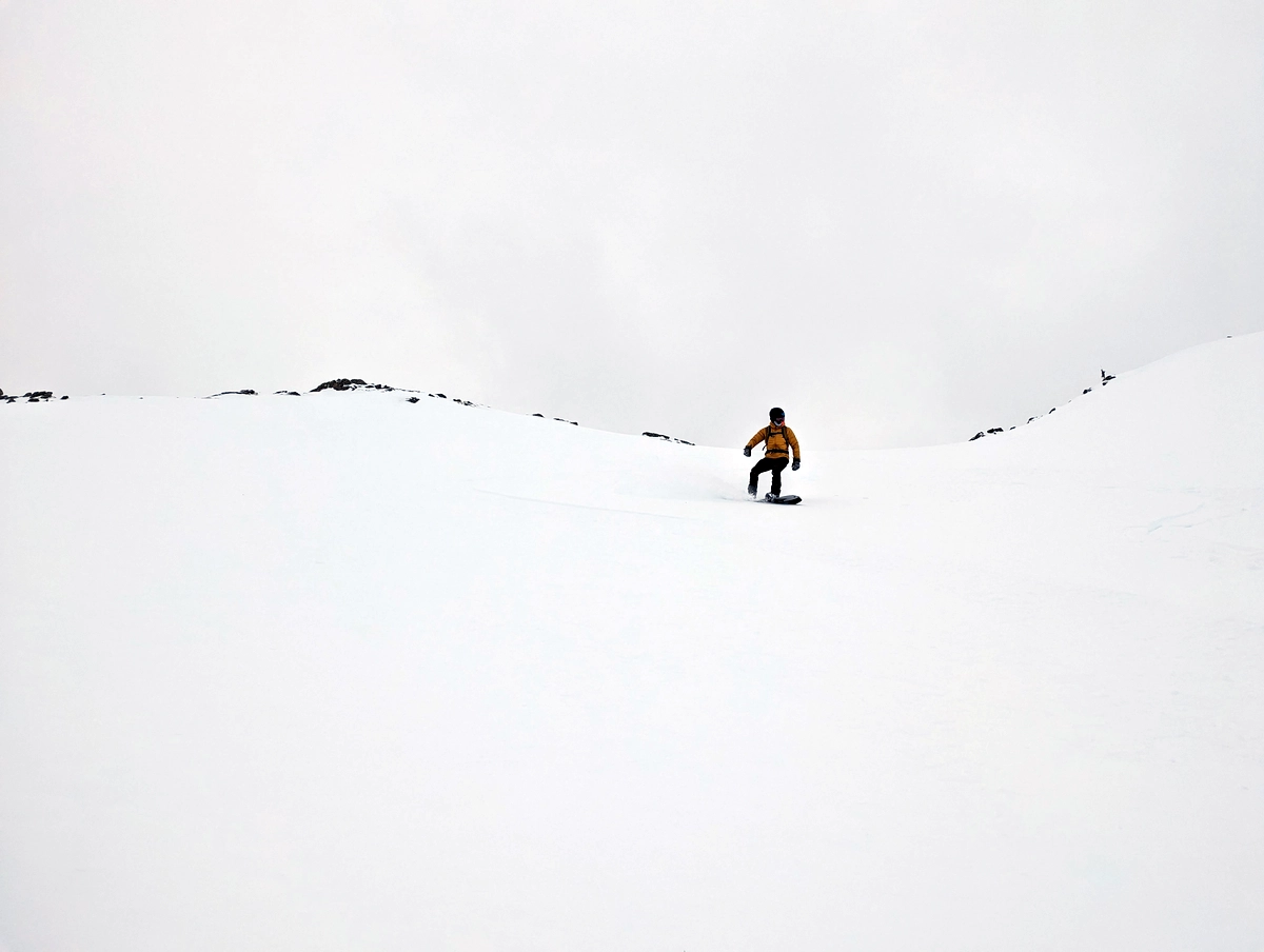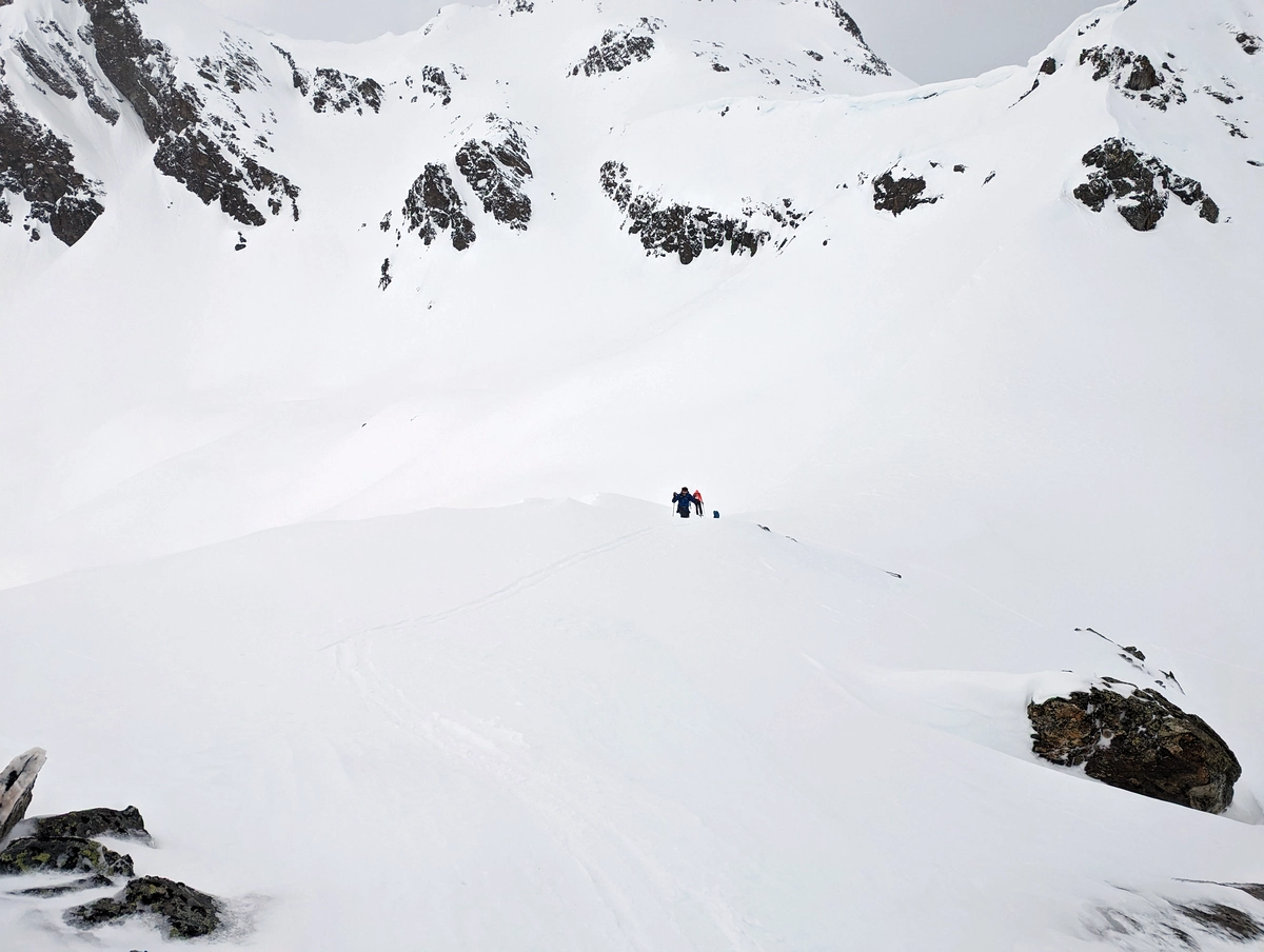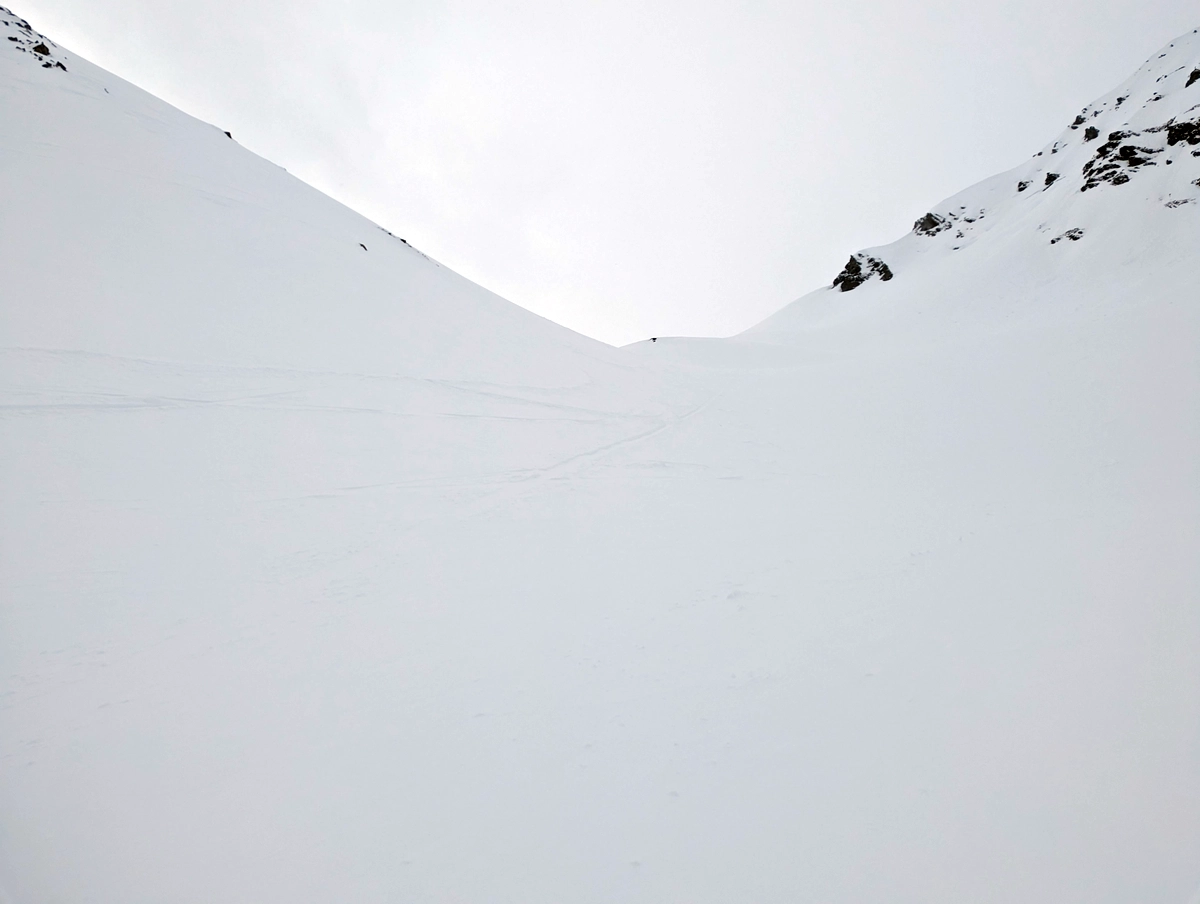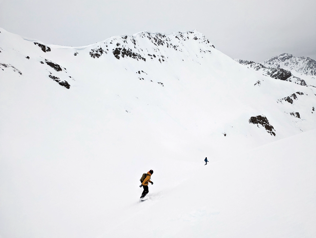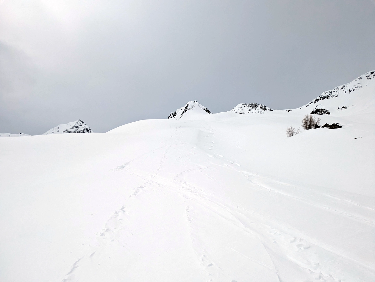 - Auf etwa 1.900 Metern Höhe wird das Gelände offener. Nun auf schönen, aber flachen Hängen Richtung Friedrichshafener Hütte.