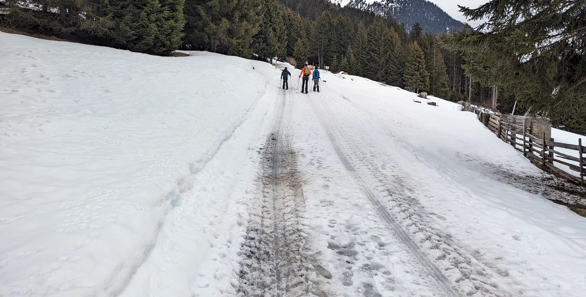 - Zunächst entlang der Forststraße neben der Landesstraße entlang und dann über die Forststraße durch den Wald bergauf. Bei sehr guter Schneelage kann auch die direkte Variante über den Sommer-Wanderweg genommen werden.