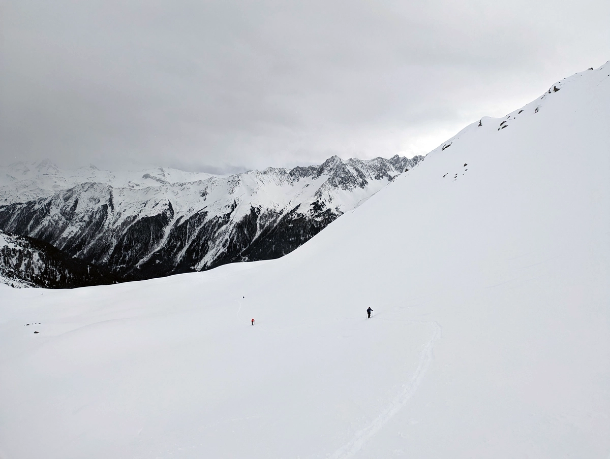 Demnach ist die Tour auf den 2.608 Meter hohen Gipfel problemlos auch für weniger erfahrene Skitourengeher möglich.