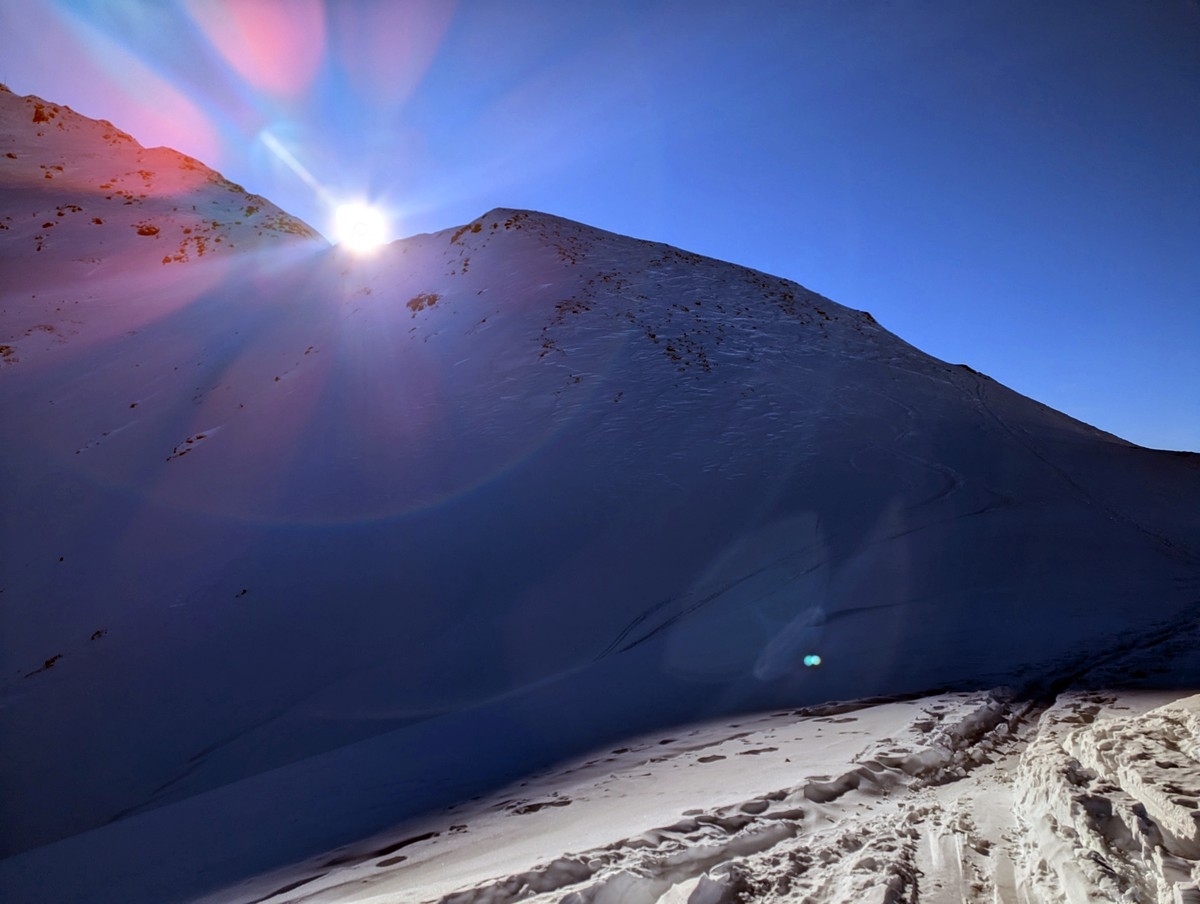Die Route gilt als relativ lawinensicher, besonders wenn man die einfachen Varianten wählt. Trotzdem sollte immer die aktuelle Lawinenlage beachtet werden – Sicherheit geht vor!
