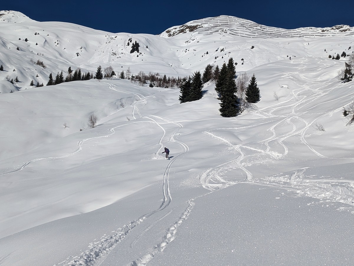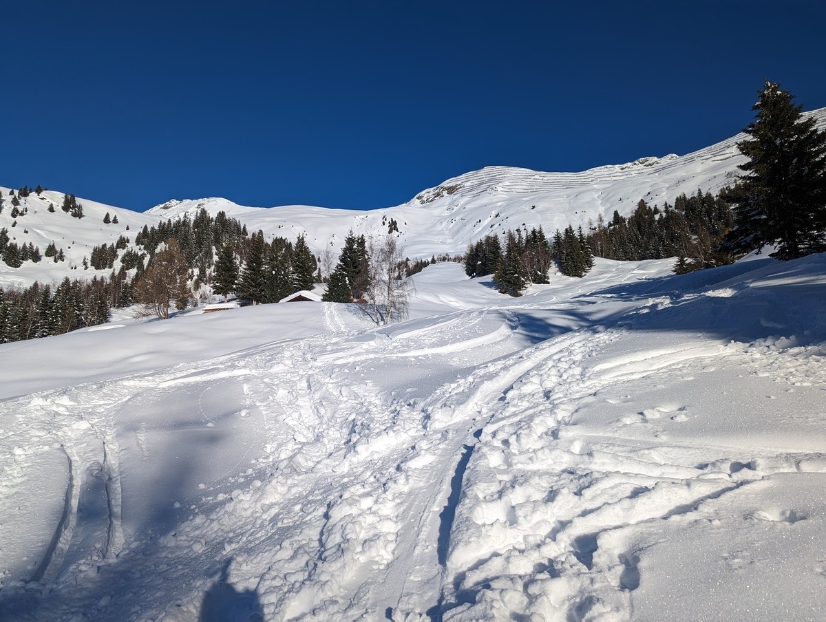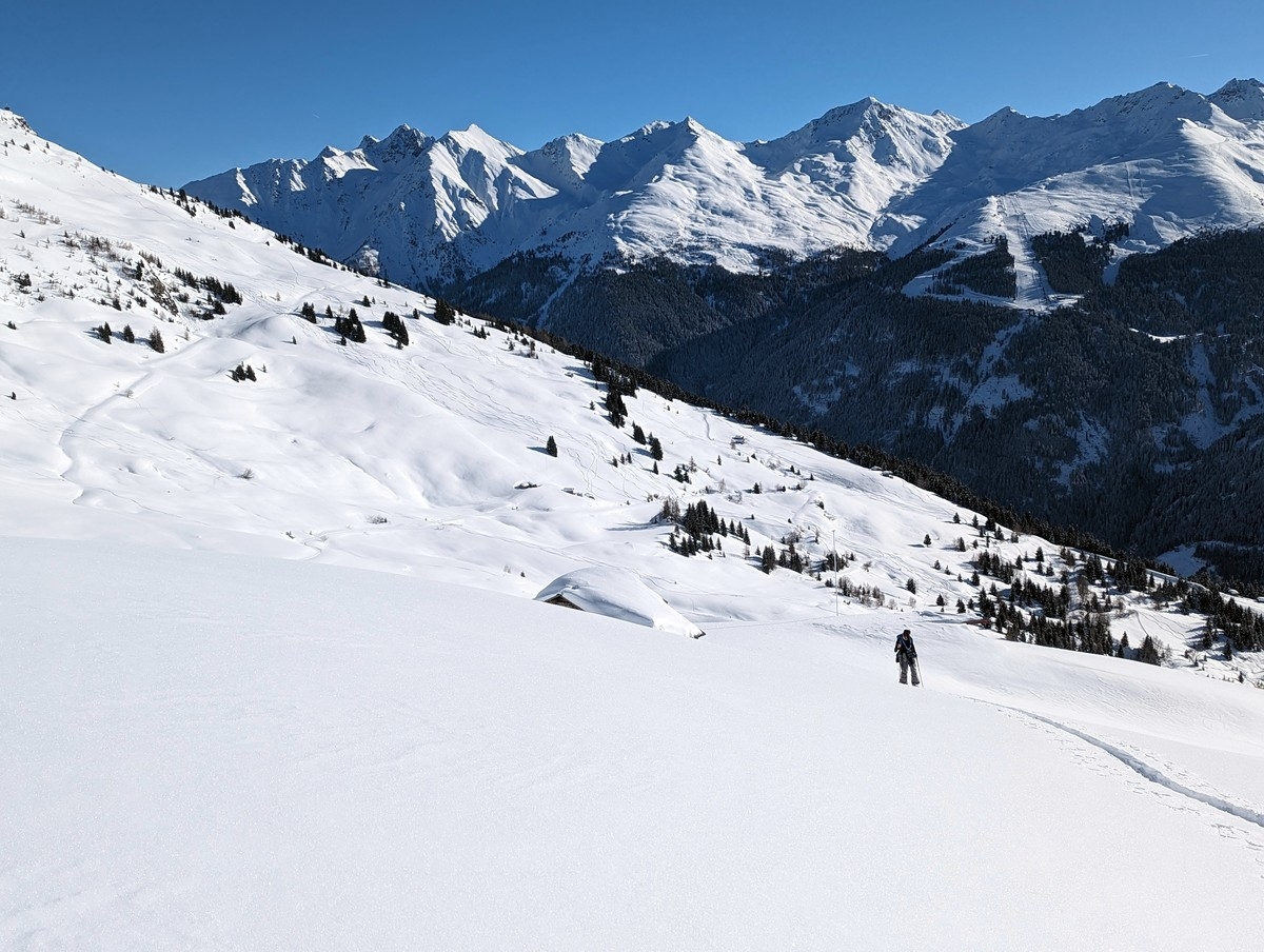 Eine großteils einfache Skitour ohne steile Hänge. Dank der zusätzlichen Lawinenverbauungen hat die Skitour eine sehr geringe Lawinengefahr.