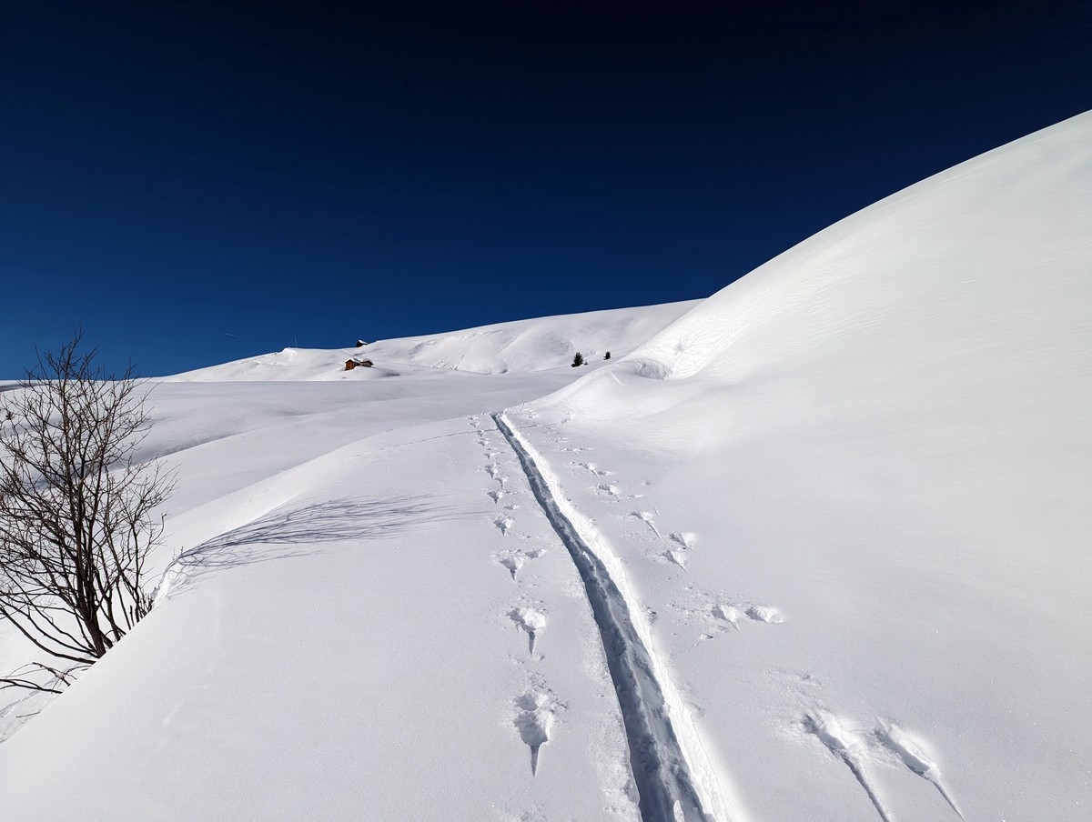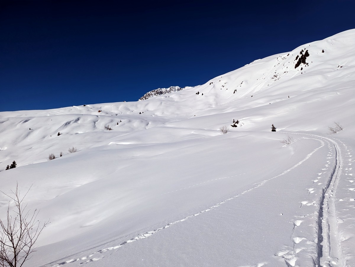 In Summe werden bei dieser Skitour etwas mehr als 800 Höhenmeter zurückgelegt. Die obere Hälfte lädt dank breiter Hänge zu variantenreichen Abfahrten ein.