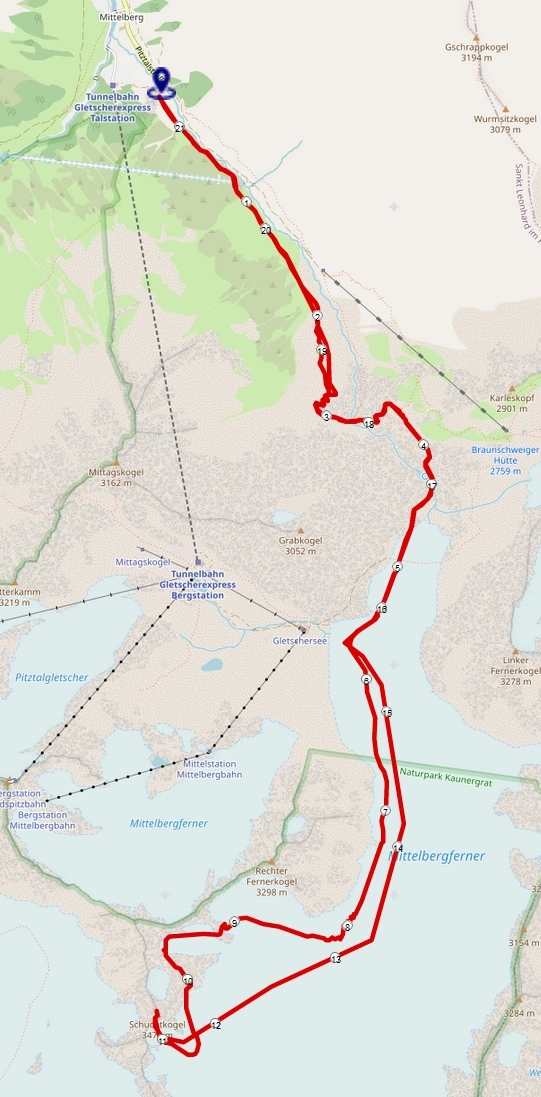 - Start bei der Talstation Pitztaler Gletscher.