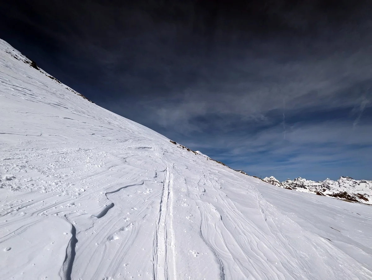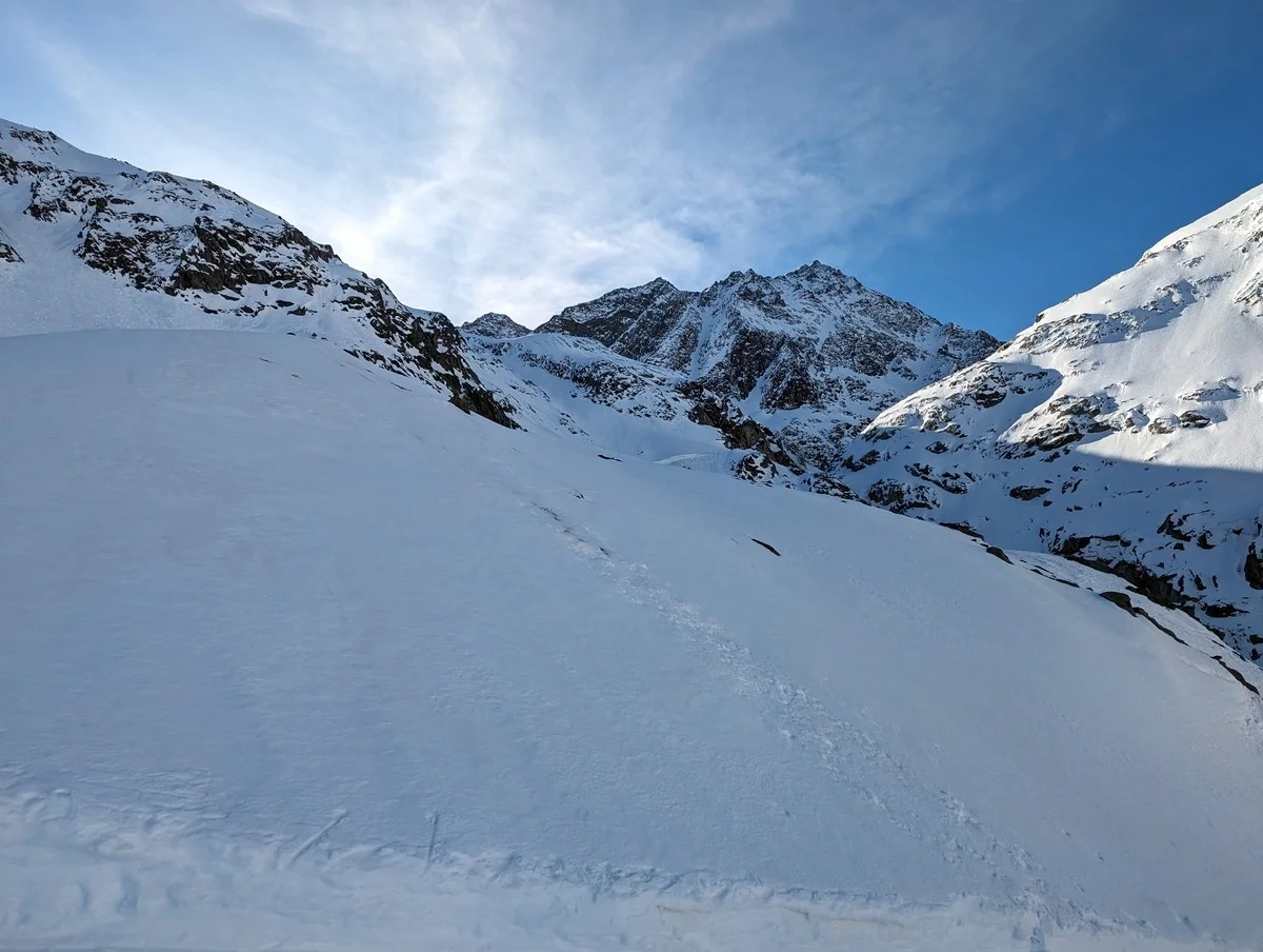 Geringe Lawinengefahr. Einzig der Schlusshang ist etwas anfälliger.