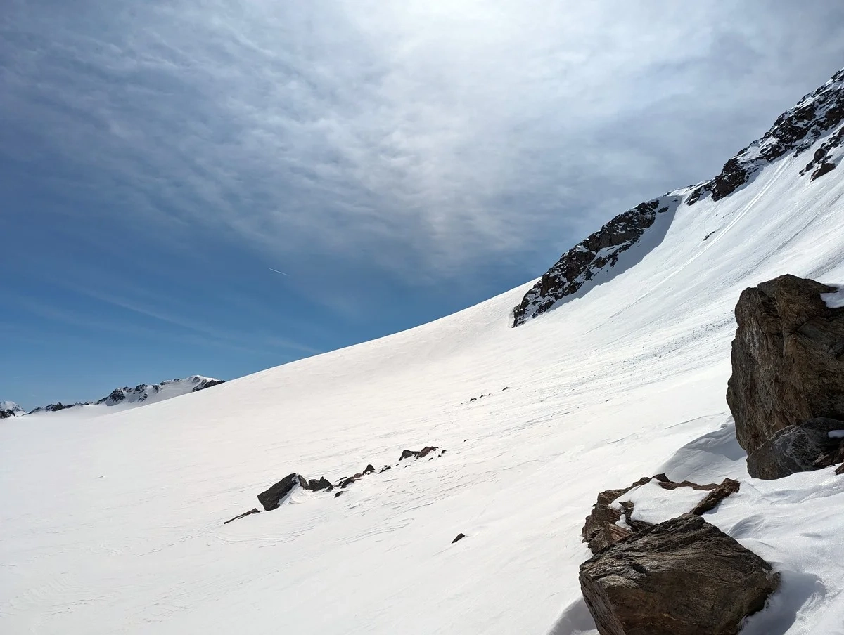 Bei Gondelunterstützung durchaus auch für Unerfahrene geeignet. Zu beachten ist, dass ihr euch durchgehend auf einem Gletscher bewegt, welcher allerdings bei guter Schneelage bei einer Frühjahrsskitour keine Spaltengefahr beinhaltet.