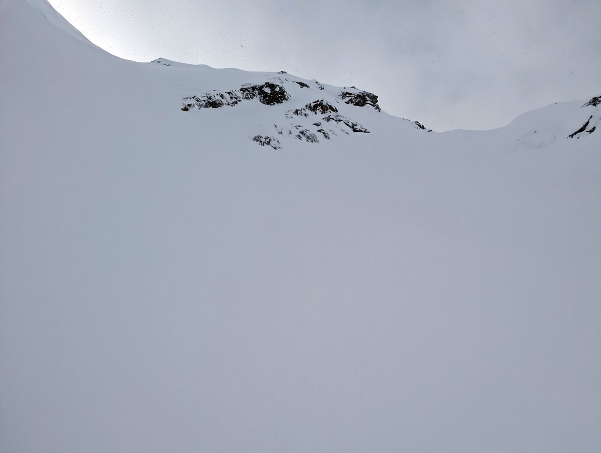 Skitour Tonigenkogel 07: Der Steilhang zum Gipfel links. Rechts ist es etwas flacher.