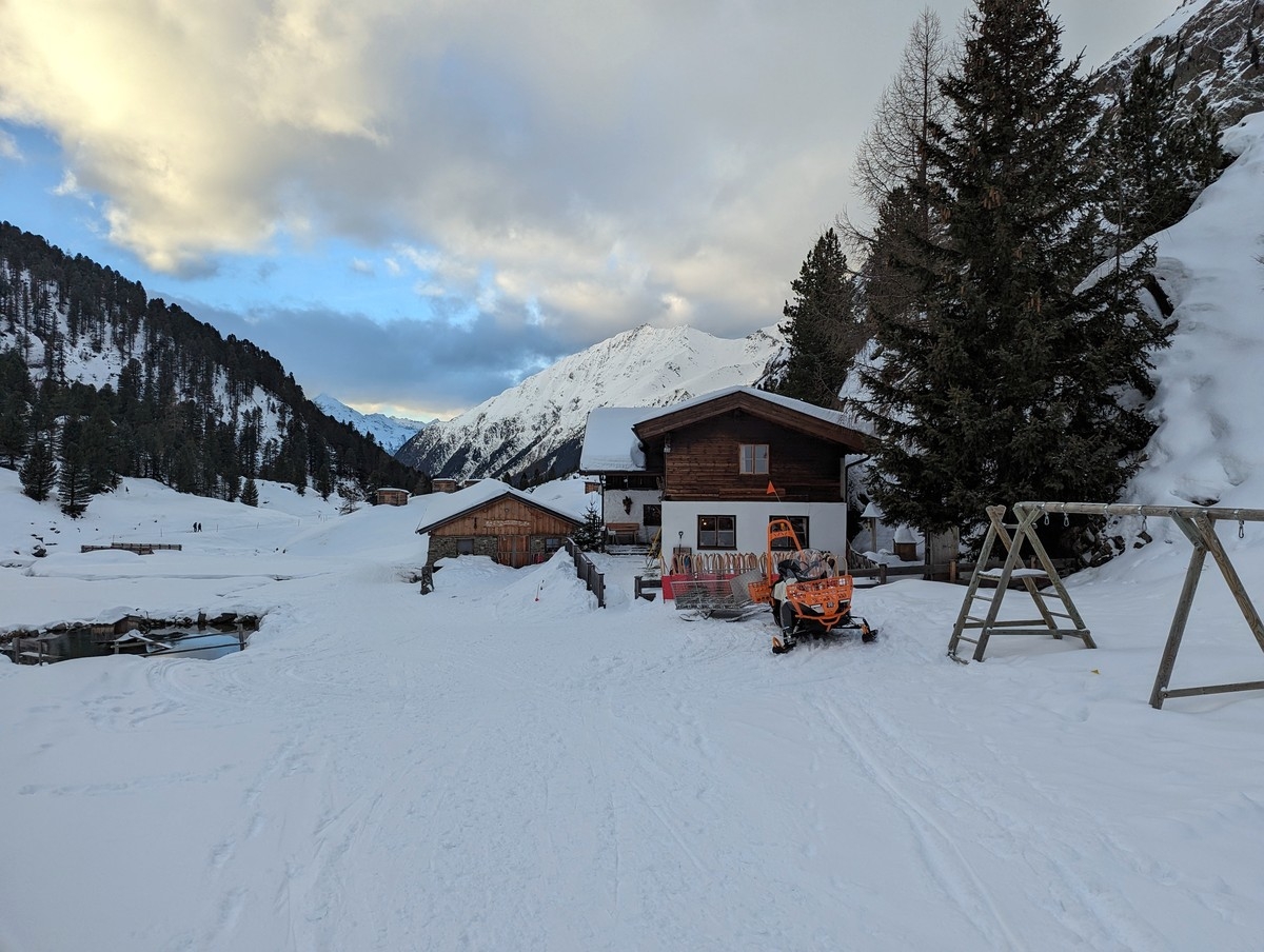 Skitour Tonigenkogel 12: Einkehr bei der Sulztalalm.