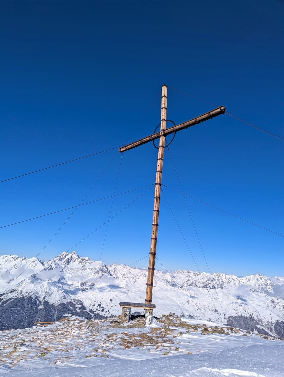 Die Skitour auf das Vordere Kreuzjoch ist ein echter Geheimtipp in der Samnaungruppe und bietet ein atemberaubendes Wintererlebnis mit Panoramablick, vielseitigen Abfahrtsmöglichkeiten und einer abwechslungsreichen Route.