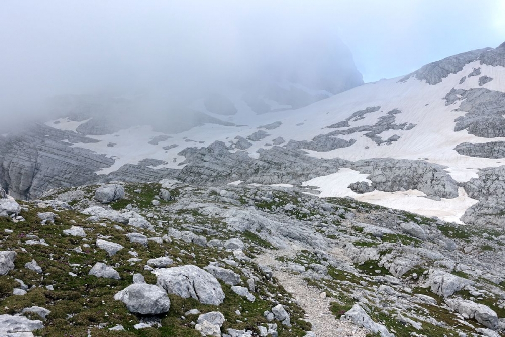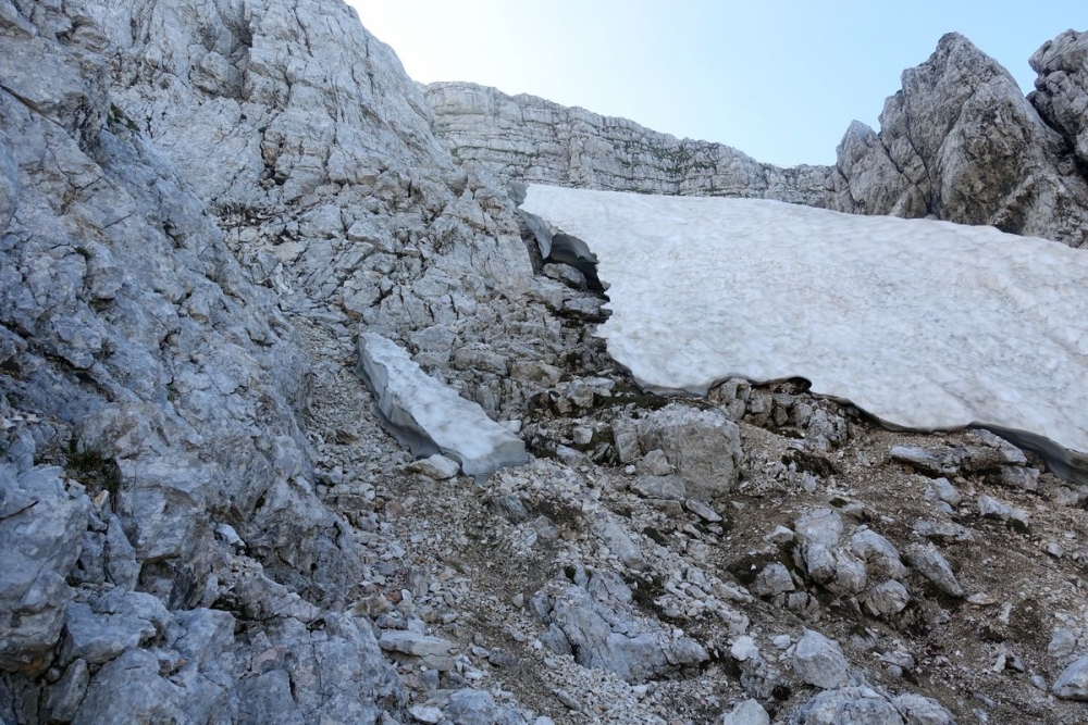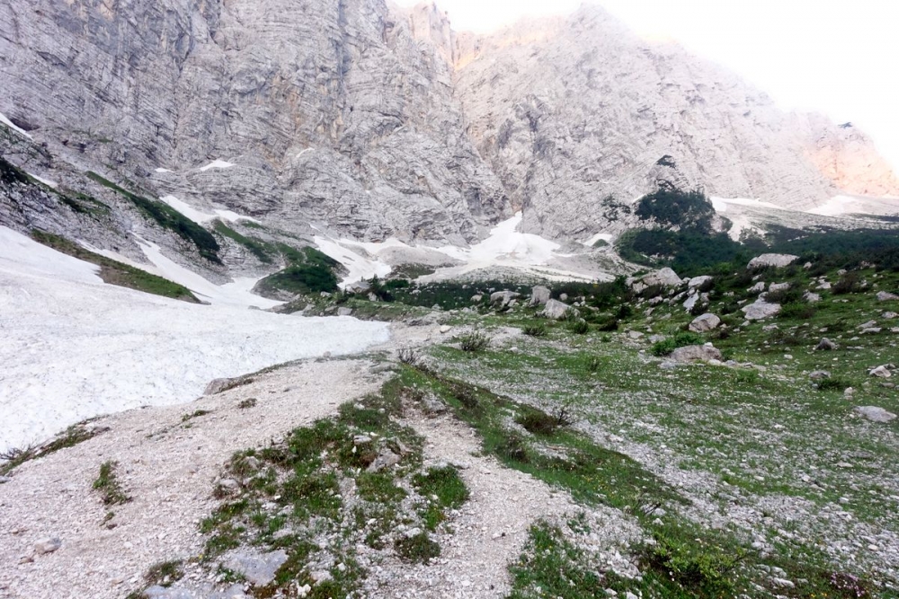 Bergschuhe oder für Sportliche auch Trailschuhe. Im Frühsommer können Altschneefelder die Tour erheblich erschweren. Ausreichend Verpflegung, denn eine Einkehr ist erst beim Abstieg im Triglavhaus möglich.