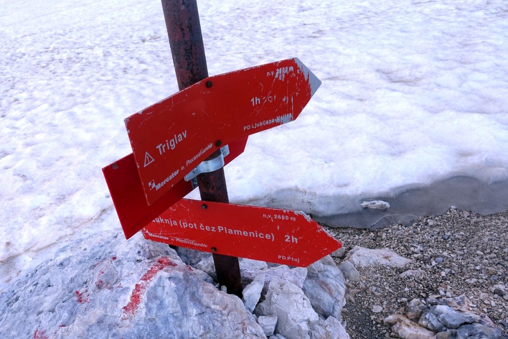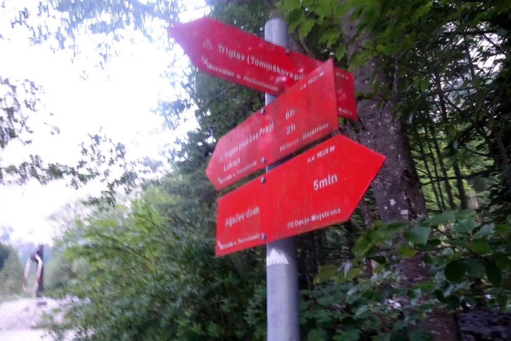 Parkplatz vor Aljazev Dom - am Schotterweg immer der Route ganz rechts folgen (Cez Plemenice na Triglav) - Luknja (1.766 m) - Cez Plemenice - Triglav (2.864) - Mali Triglav - Triglavski dom na Kredarici (Triglavhaus) - Pragerweg - Aljazev Dom