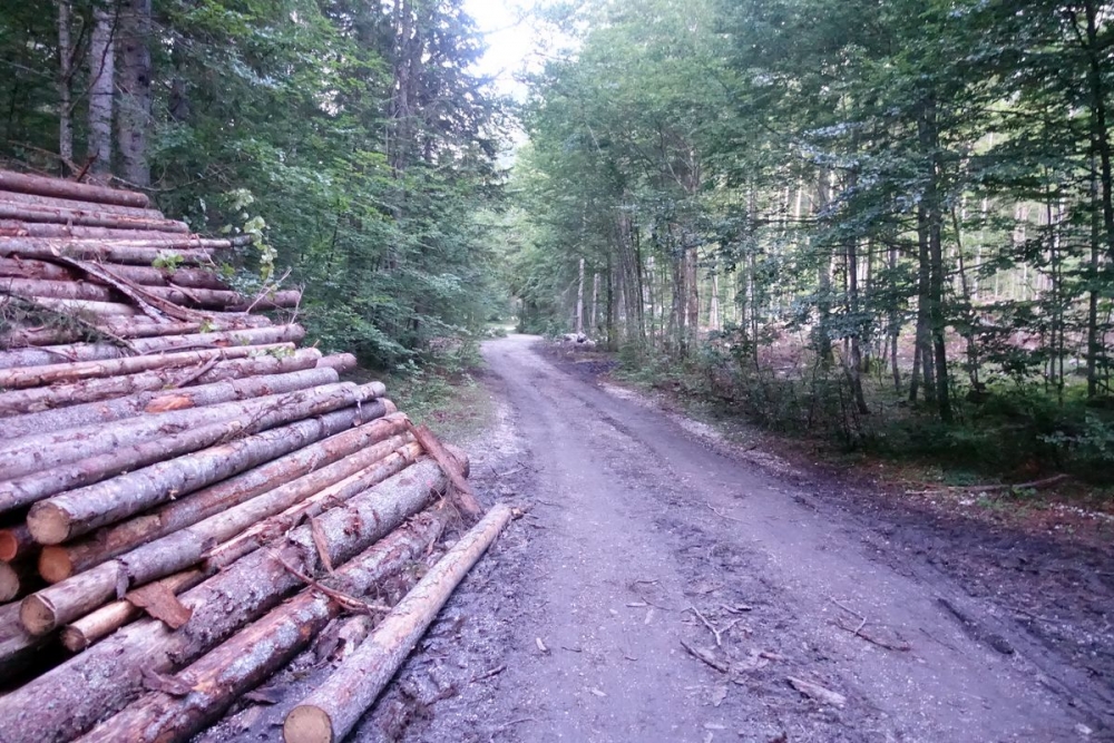Bei Mojstrana der Straße Richtung Aljazev dom folgen. Dort am Ende der Schotterstraße parken.