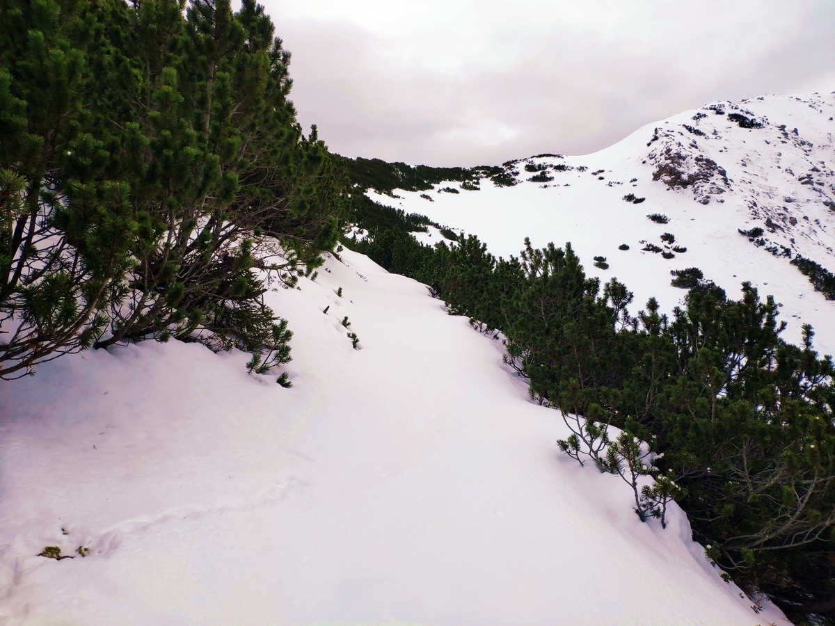 Im Winter ist der Abschnitt über den Grat deutlich anspruchsvoller und daher nicht zu empfehlen bzw. nur für sehr Erfahrene sinnvoll (Eisgeräte mitnehmen).