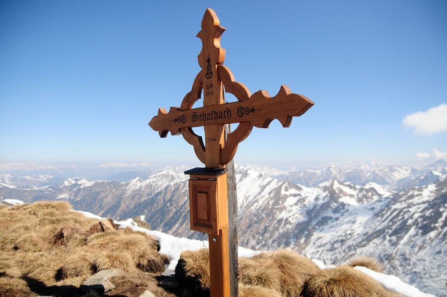 Ob es überhaupt einen markierten Weg zum Schafdach gibt, kann ich nicht sagen. Das Gipfelkreuz wurde allerdings erst 2015 neu errichtet. Ein Ausflug auf das Schafdach lohnt sich auf alle Fälle: Abwechslungsreiche Route und grandios Atmosphäre am Gipfel.