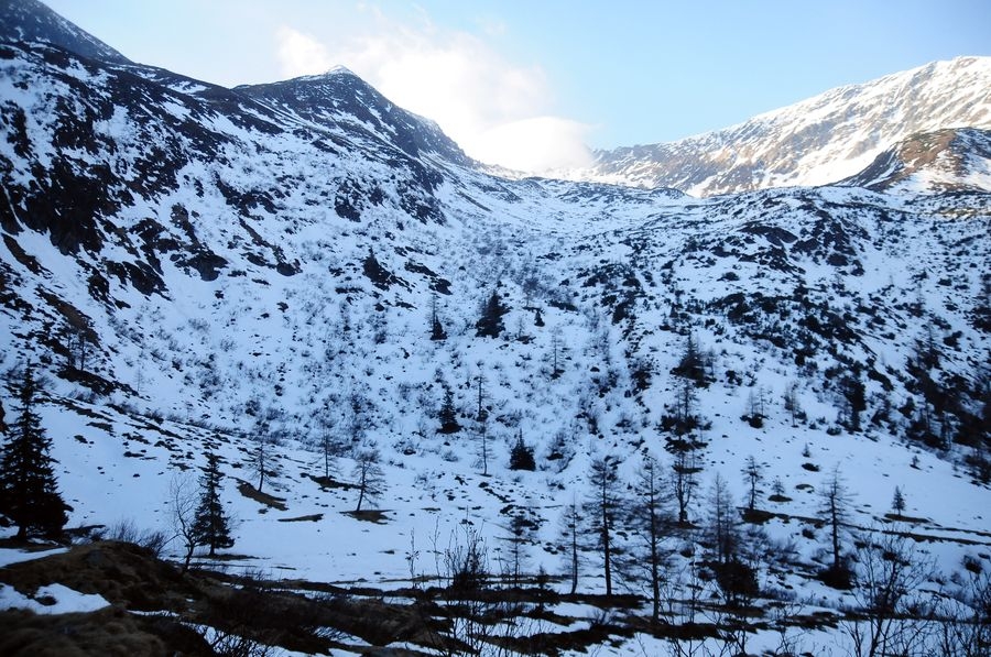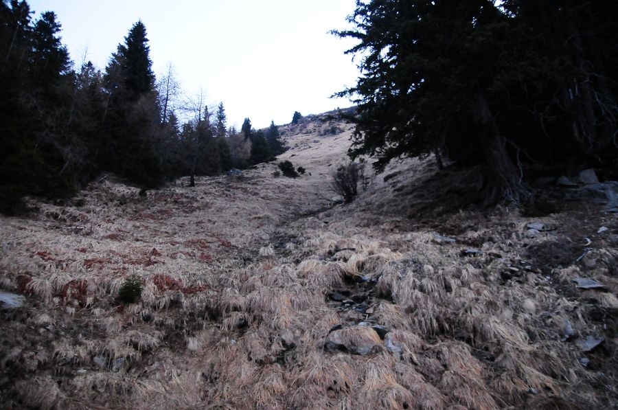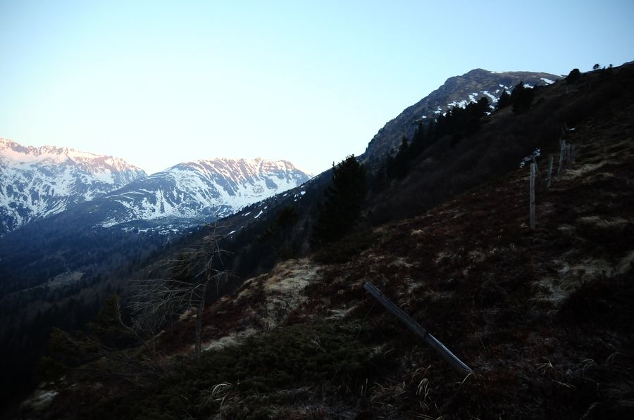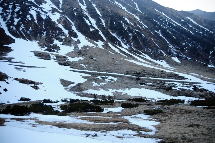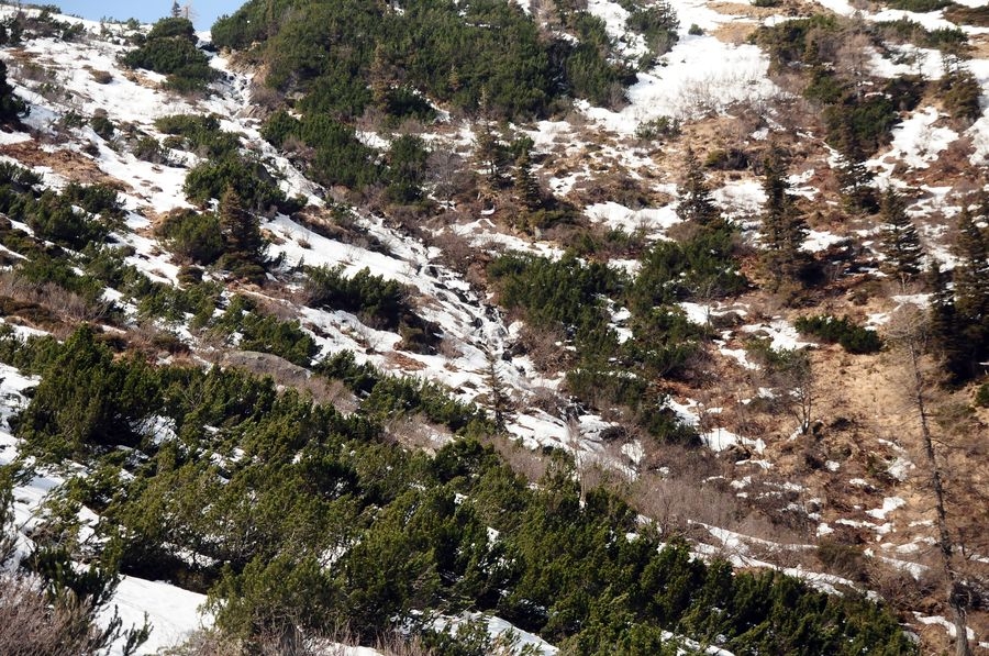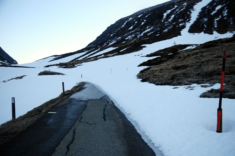 Die ursprünglich geplante Wanderung sollte bei der Winklerkehre (1.490 m) starten und über den Hochstubofen (2.385 m) auf die Rettlkirchspitze (2.475 m) führen. Doch der Sölkpass, der mich zum Startpunkt führen sollte, war aufgrund der Schneeverwehungen gesperrt. So musste ich 6,5 km vor der Winklerkehre beim Alpengasthof Kreuzerhütte (1.378 m) meine Tour beginnen. Da ich nicht die ganze Zeit die verschneite Straße entlang gehen wollte, versuchte ich eine Abkürzung über einen Forstweg. Doch je weiter ich ging, desto mehr entfernte ich mich vom Sölkpass. Irgendwann war mir klar, dass ich entweder umdrehen musste oder ein paar Steilhänge hinauf kraxeln musste um doch wieder zum richtigen Weg zu finden. Ich entschied mich natürlich für Variante B (siehe Bilder). Nach etwa einer Stunde Kraftarbeit war ich dann endlich wieder auf der Straße die von Schneemassen und teilweise Glatteis bedeckt war. Dort ging es auf den höchsten Punkt des Sölkpasses (1.788 m) hinauf, ehe es rund 300 Höhenmeter bergab zur Winklerkehre ging. Gestartet kurz nach 6 Uhr war ich also um 8 Uhr endlich bei dem ursprünglich geplanten Start und schön etwas müde. Nicht nur aufgrund des „Abkürzers“ sondern auch des kniehohen Schnees, der Schritt für Schritt ordentlich an Kraft kostete.